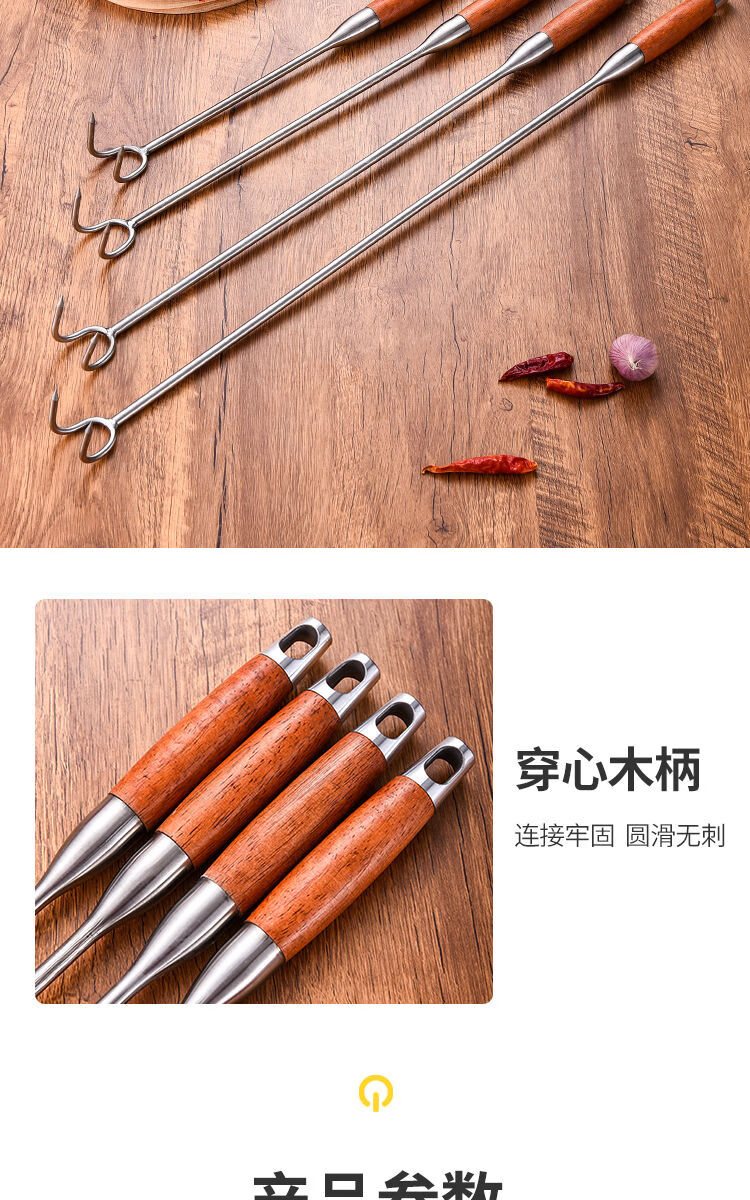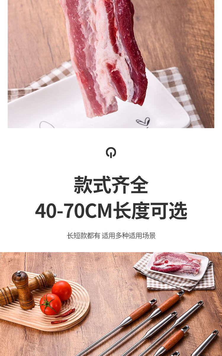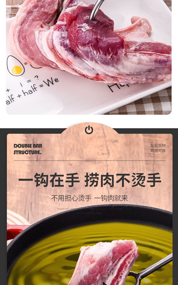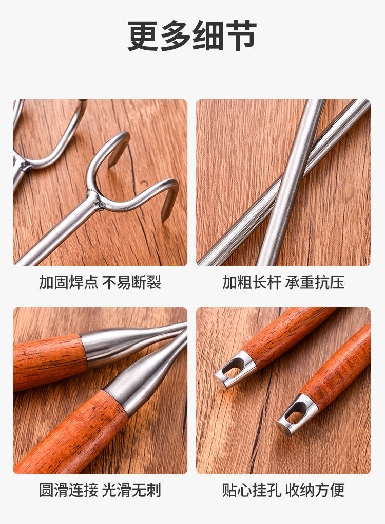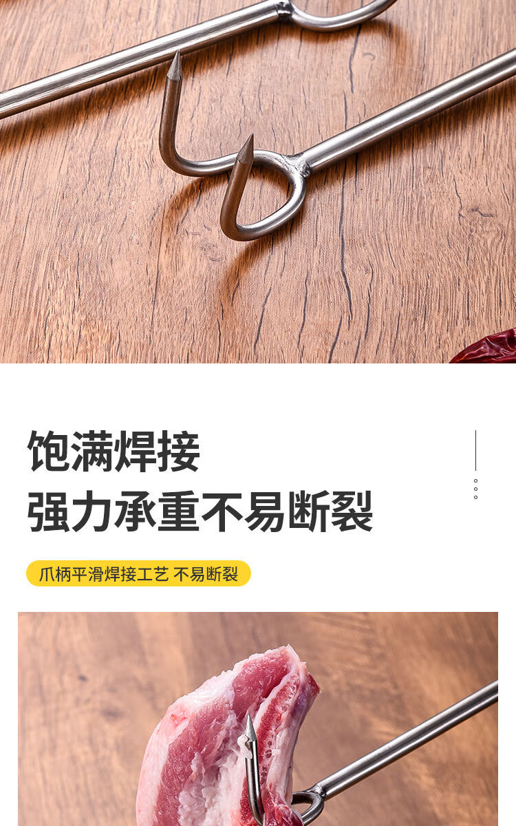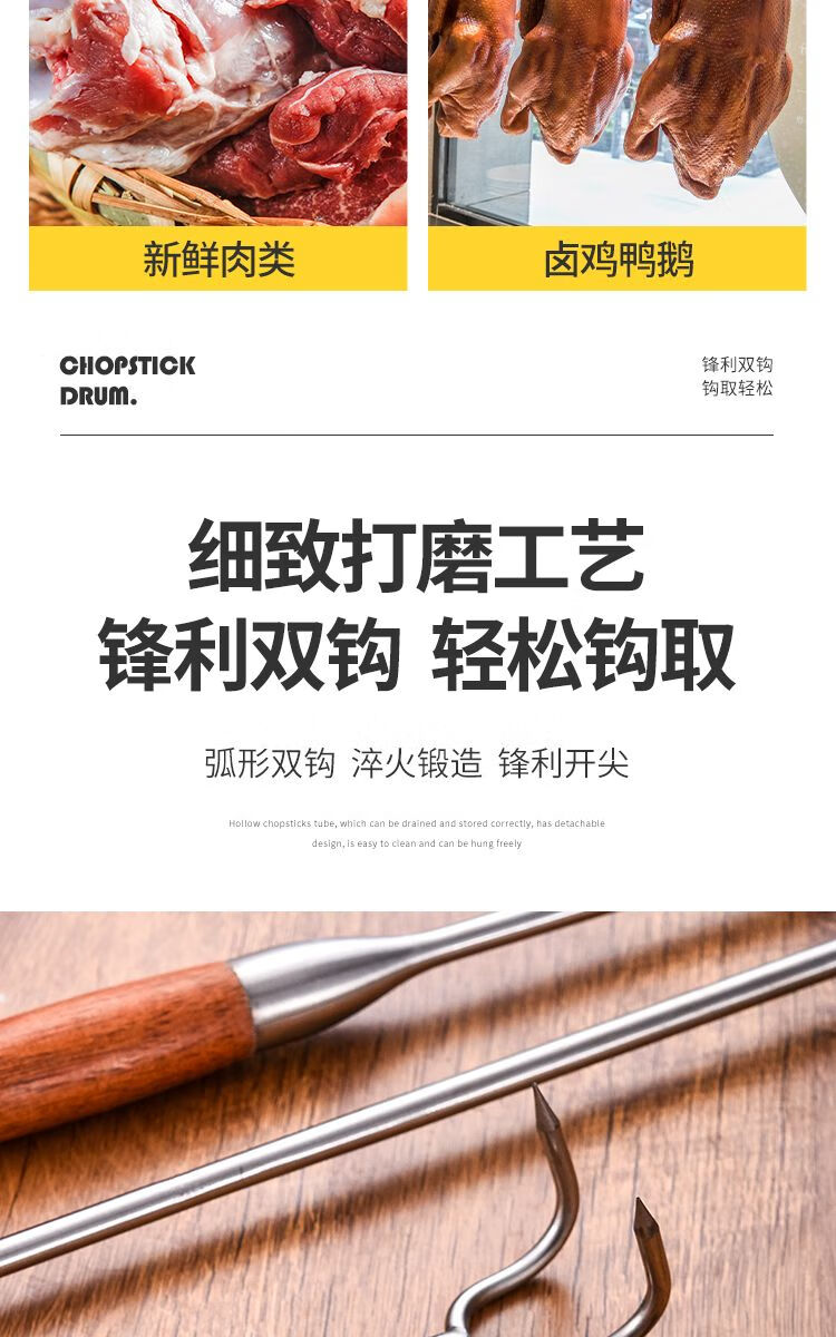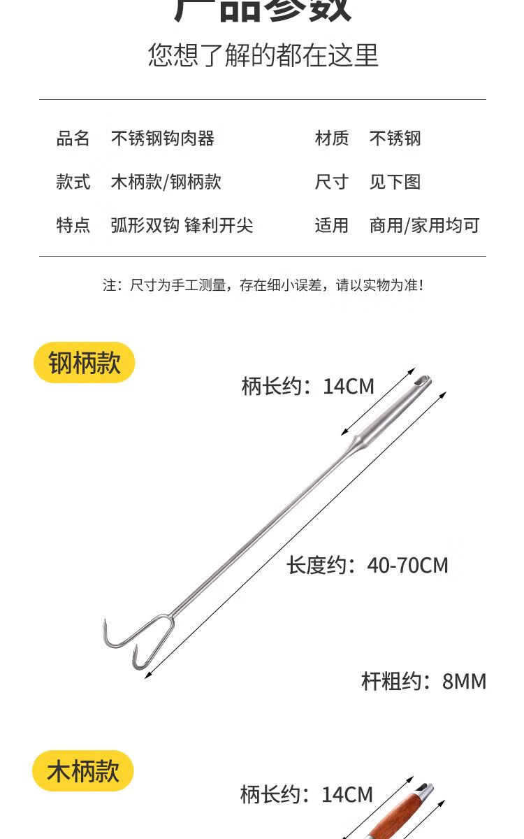 GIOIO加粗不锈钢抓钩捞肉长杆防烫长柄卤肉钩老式捞熟肉钩户外拾物捡菌 木头把手【3MM厚】-普通款