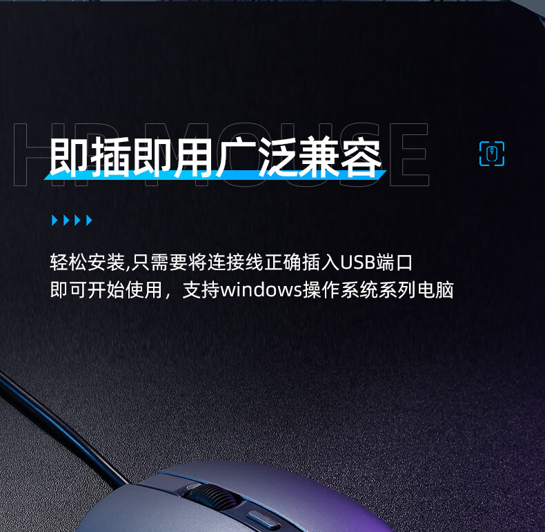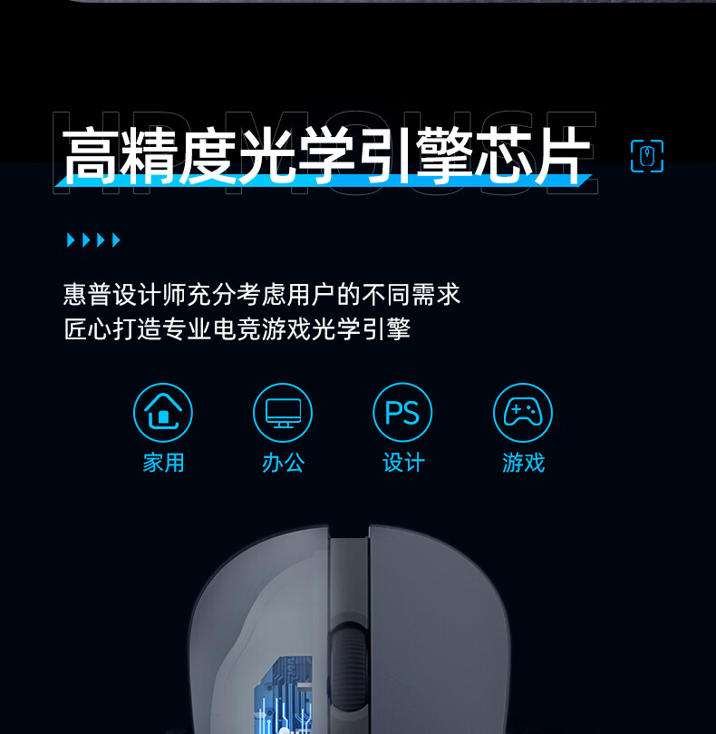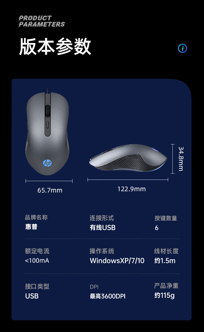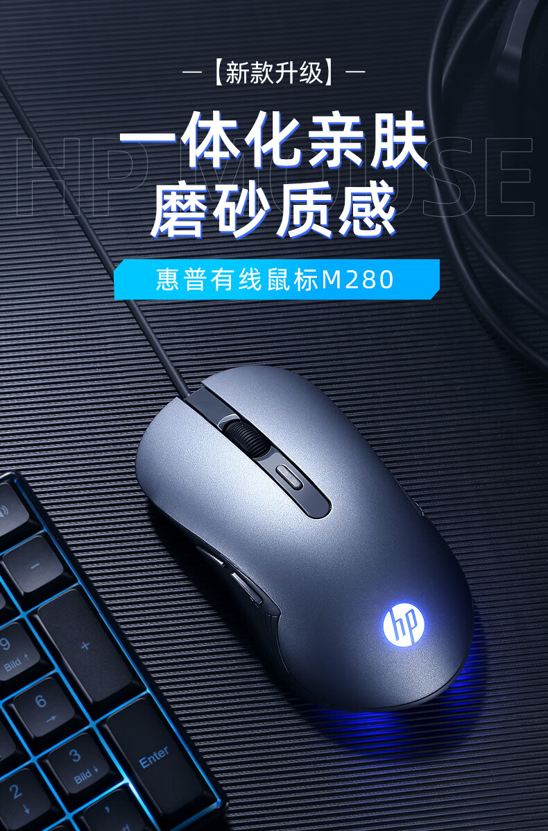 惠普(HP)M280有线鼠标 静音家用办公笔记本台式机电脑 人体工学电竞游戏鼠标 枪灰