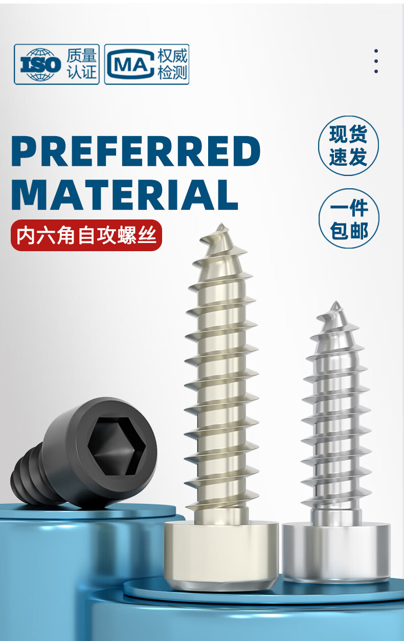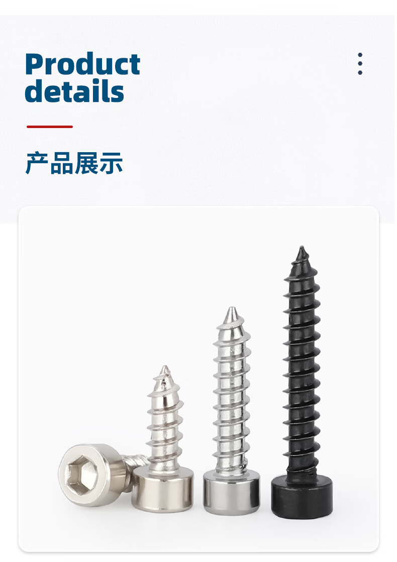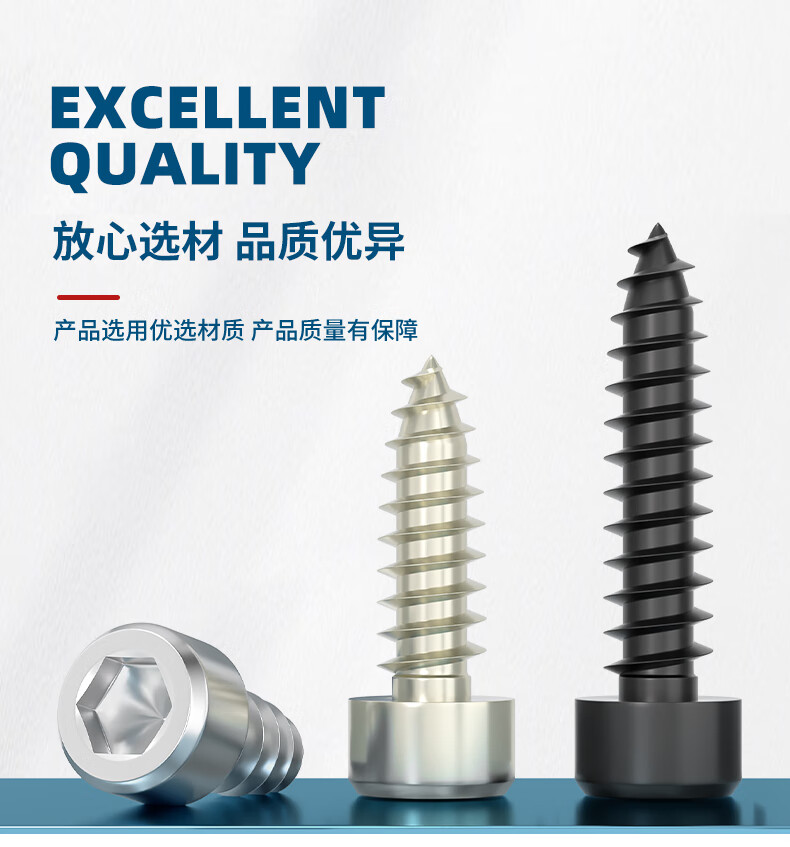 天卓五金8.8级黑色内六角自攻螺丝304不锈钢木螺丝镀镍自攻丝螺钉M3M4M5M6 ---以下为【8.8级黑色】---