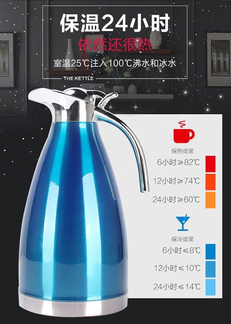 GIOIO304不锈钢保温壶真空热水瓶家用保温瓶大容量保温水壶暖壶暖瓶 1500ML炫彩蓝 201普通保温【4-6小时】