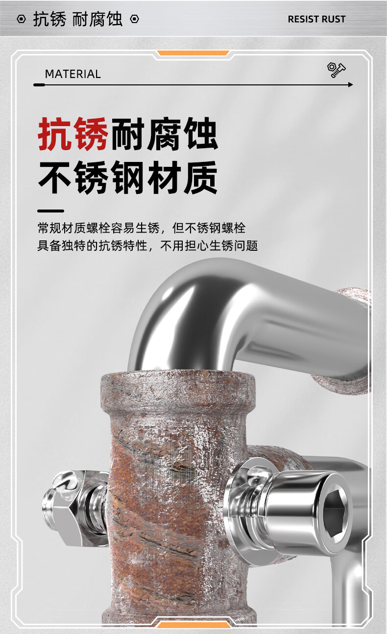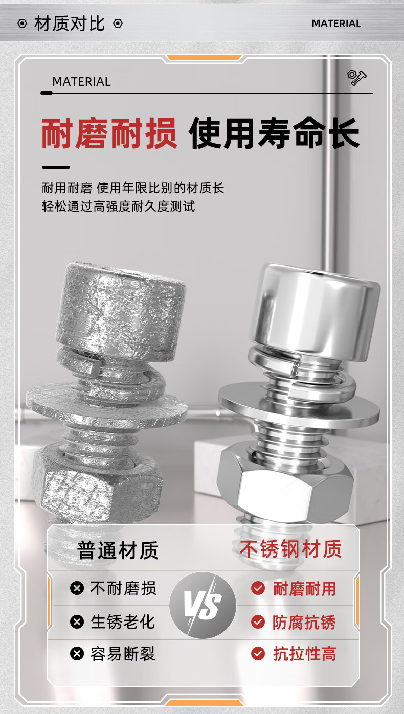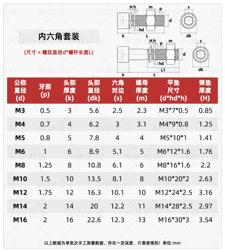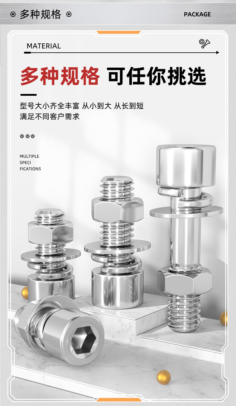 天卓五金201不锈钢内六角螺丝螺母套装栓螺杆大全组合M3M4M5M6M8M10-16mm M3*5-150套