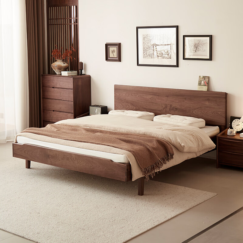 梵而全实木双人床北美黑胡桃家具小户型主卧双人床1.5单人大床 燕尔双人床·1.80m