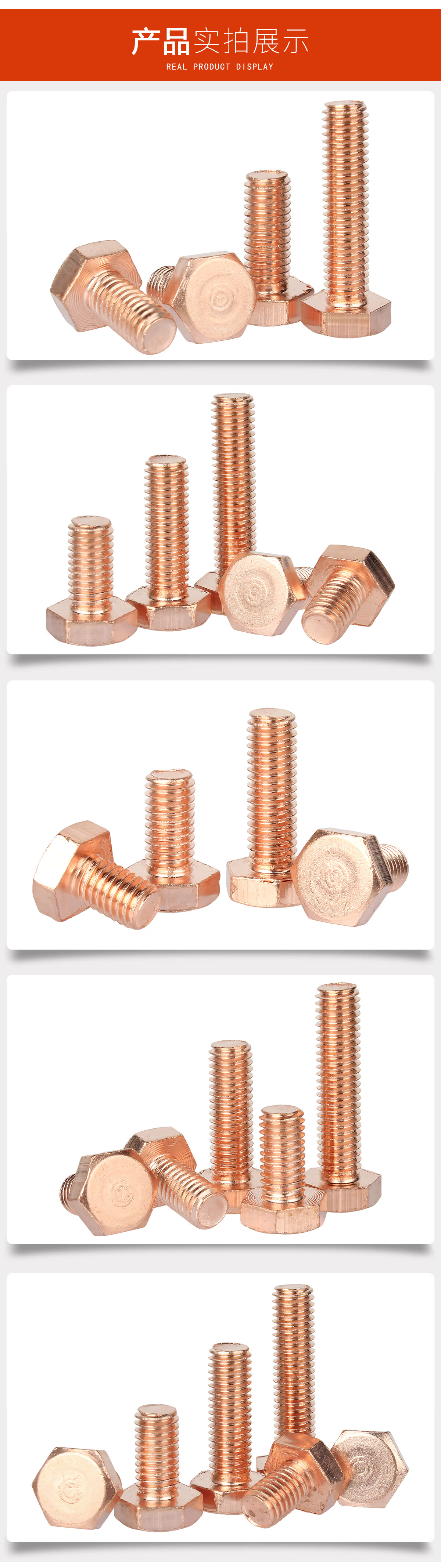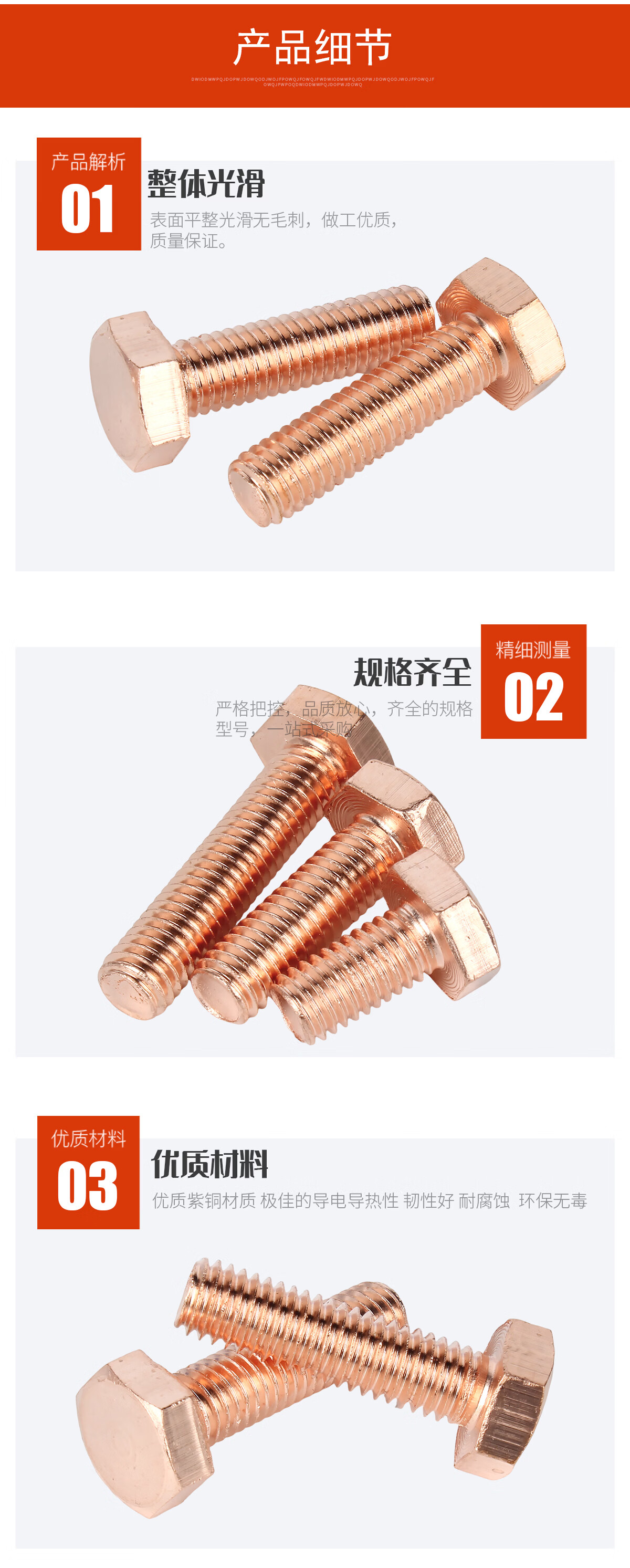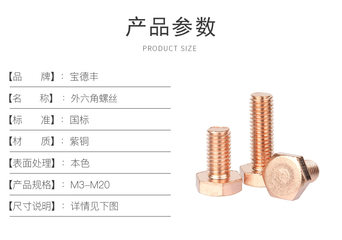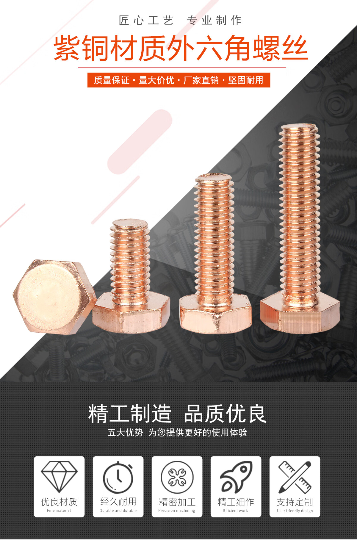宝德丰国标T2纯紫铜外六角螺丝铜螺栓螺钉加长螺杆全M5M6M8M10M12M16mm M3x4[5只]