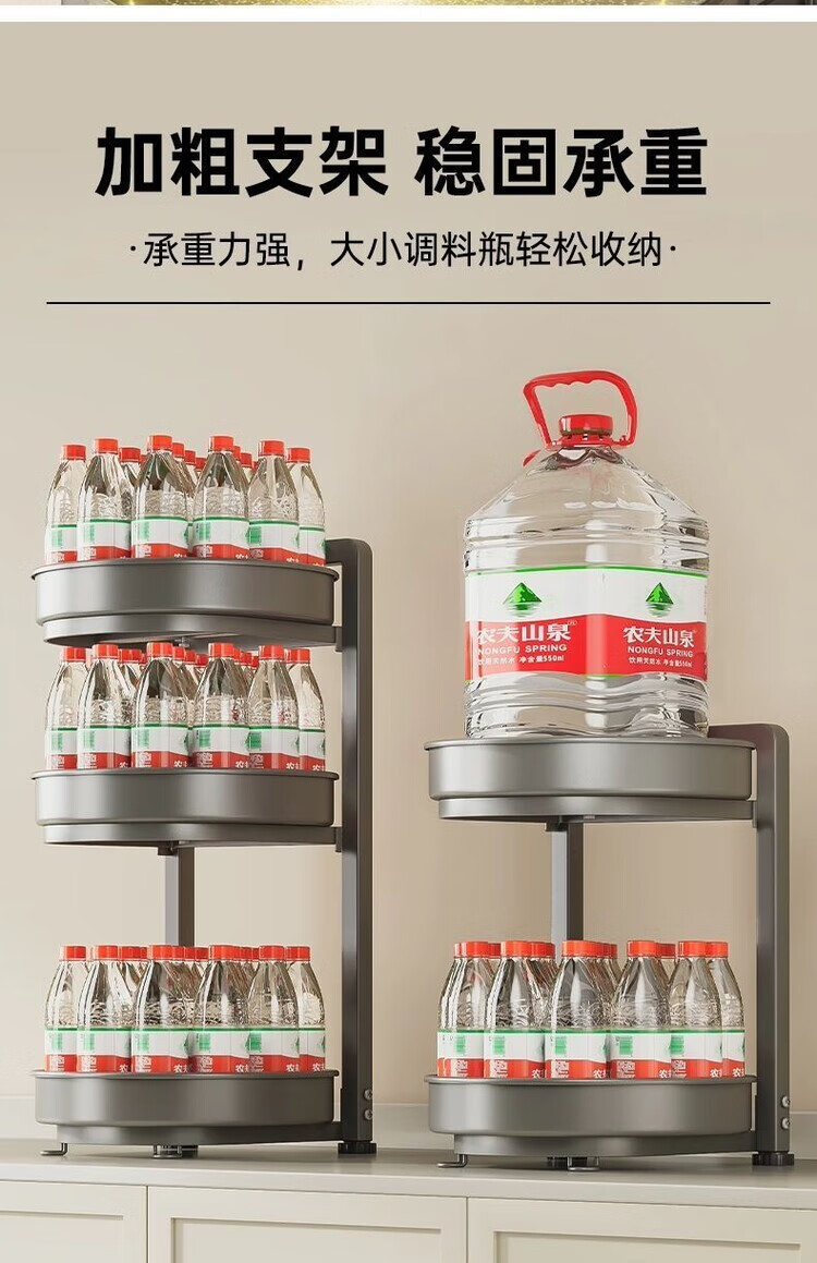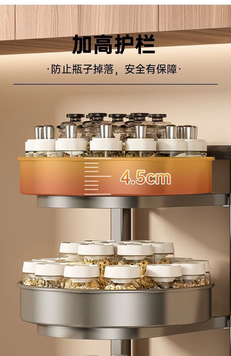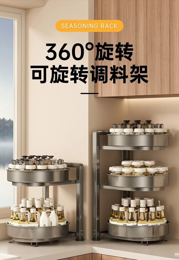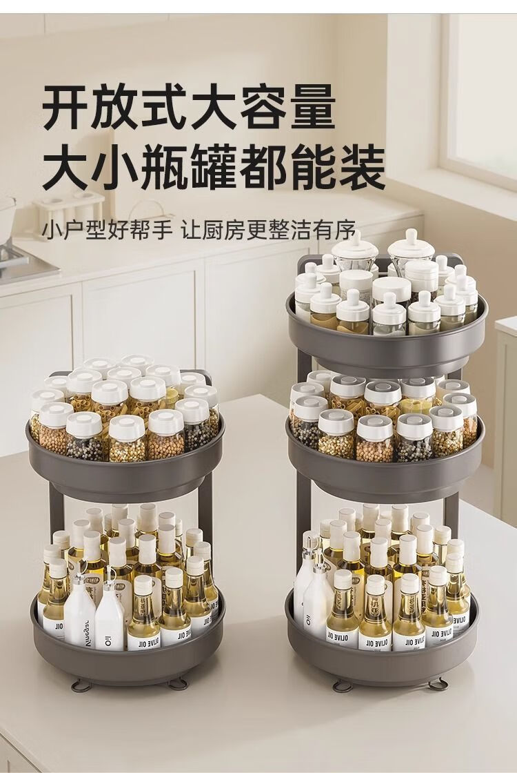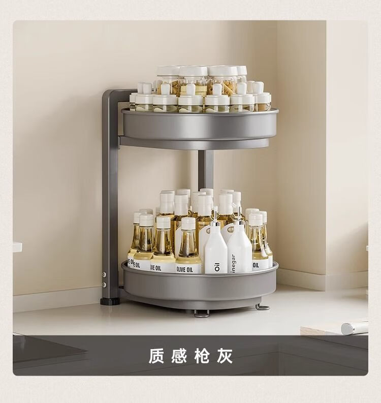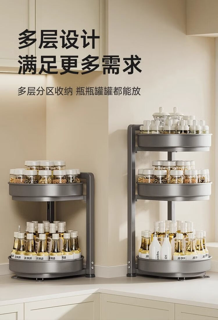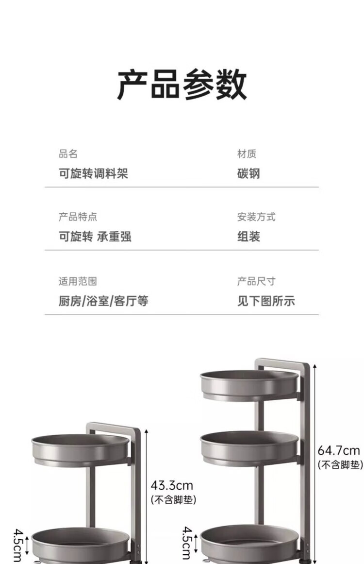 简漾旋转厨房调料置物架台面多功能油盐酱醋调味料用品大全转角收纳架 升降调料架2层白 无规格