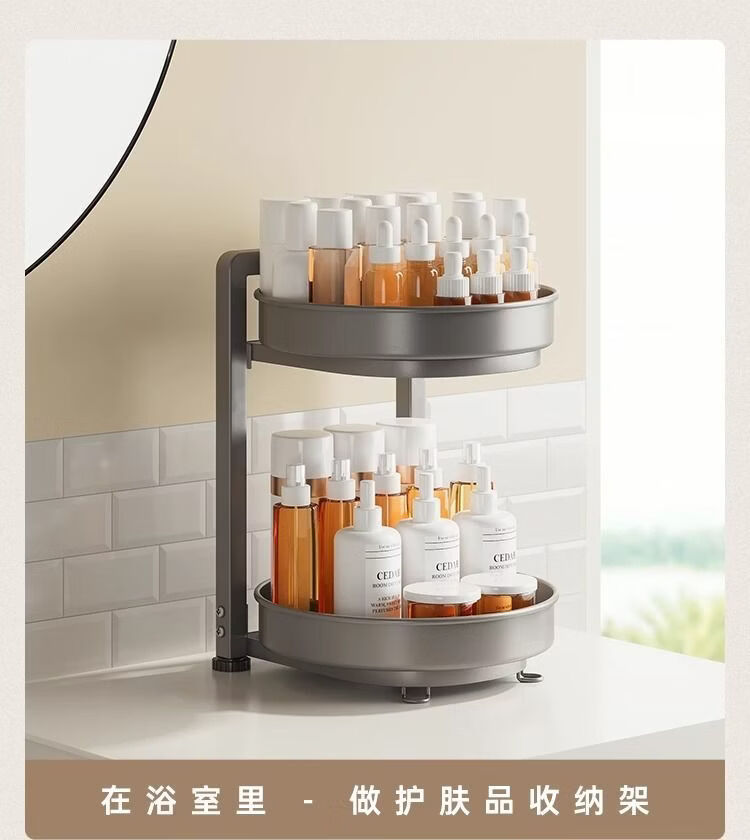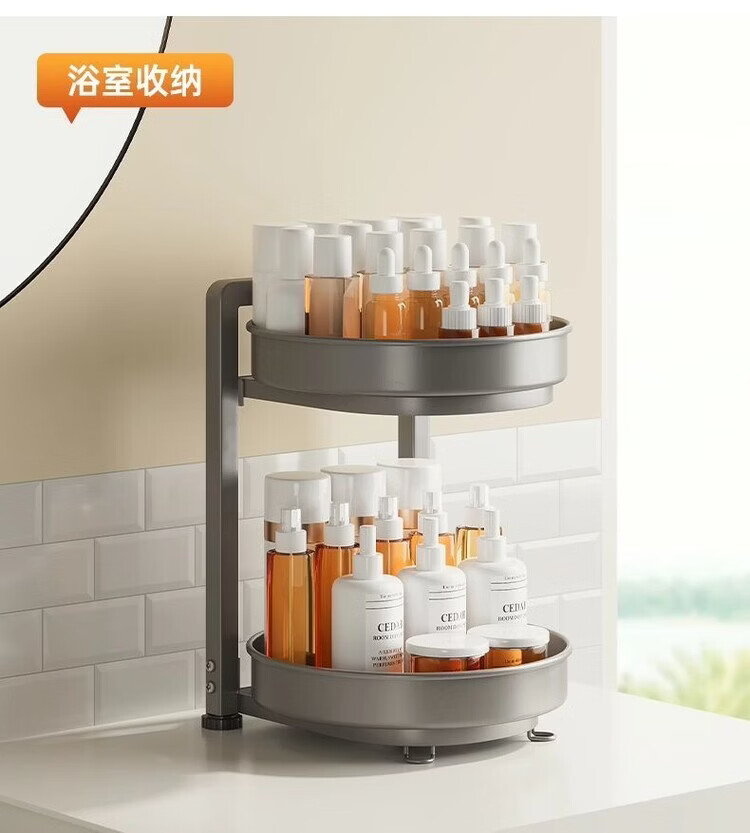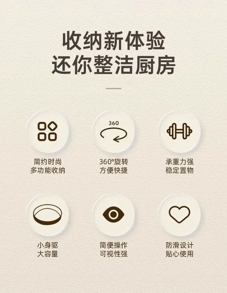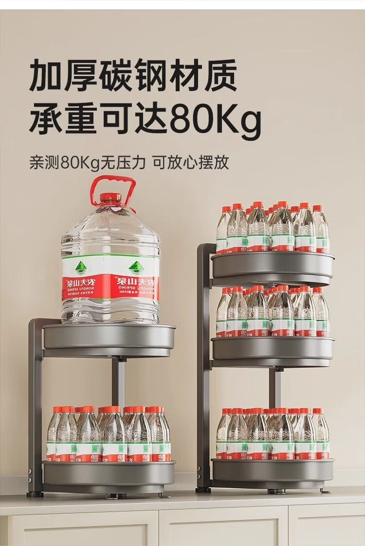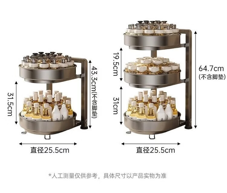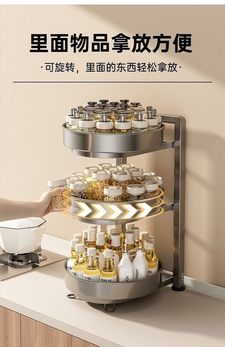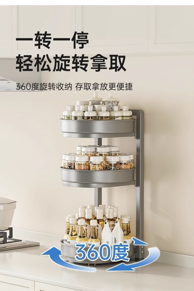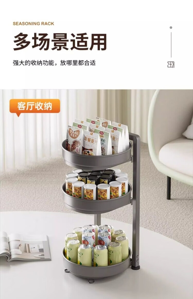 简漾旋转厨房调料置物架台面多功能油盐酱醋调味料用品大全转角收纳架 升降调料架2层白 无规格