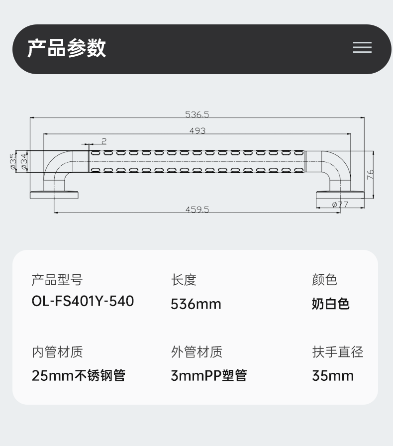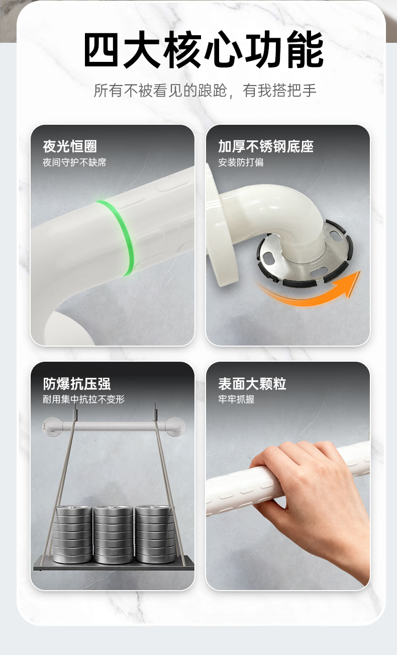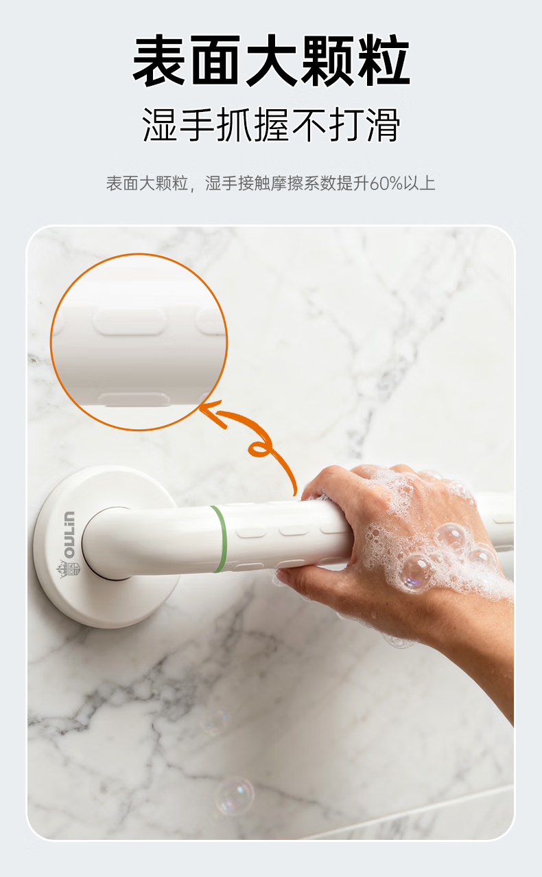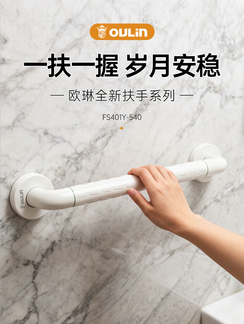 欧琳卫生间扶手老人浴室无障碍把手不锈钢防摔倒厕所防滑安全栏杆 奶白色—不锈钢内管—53CM