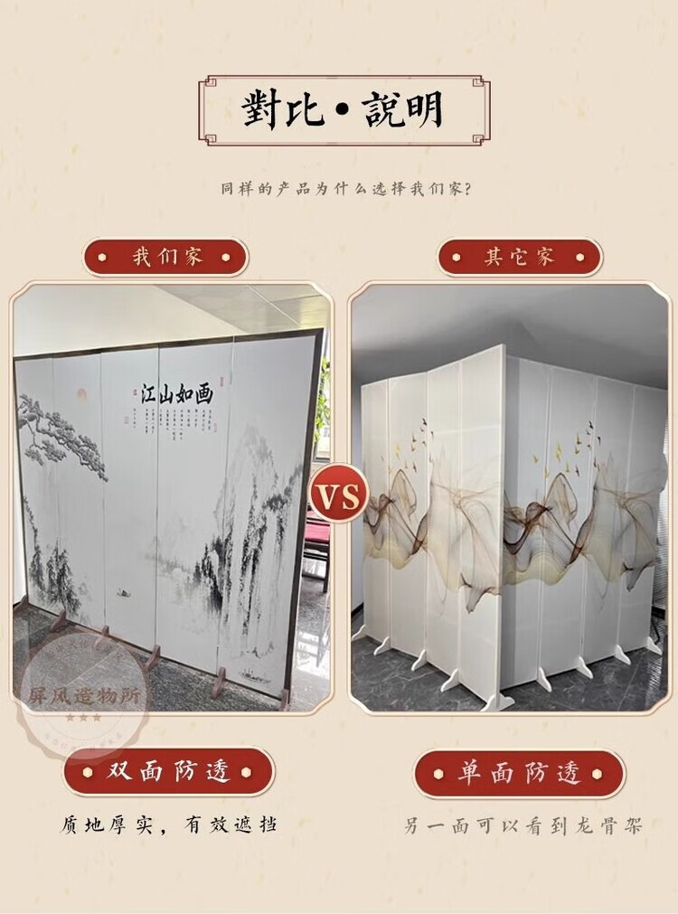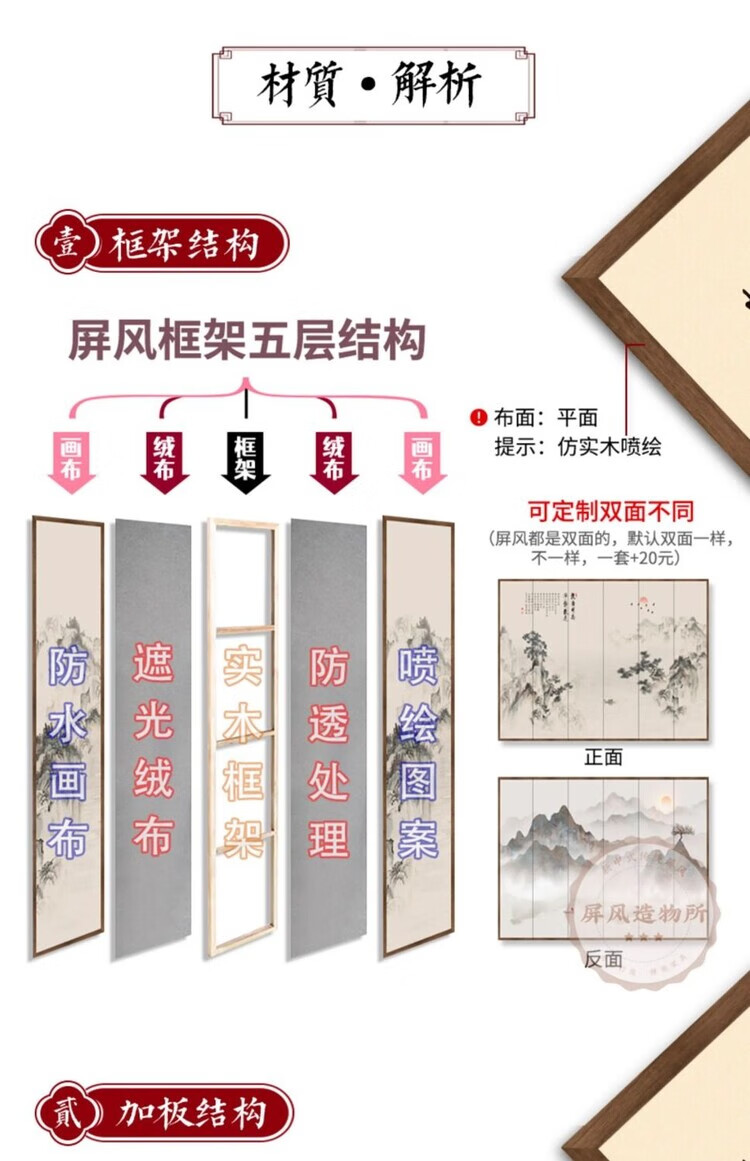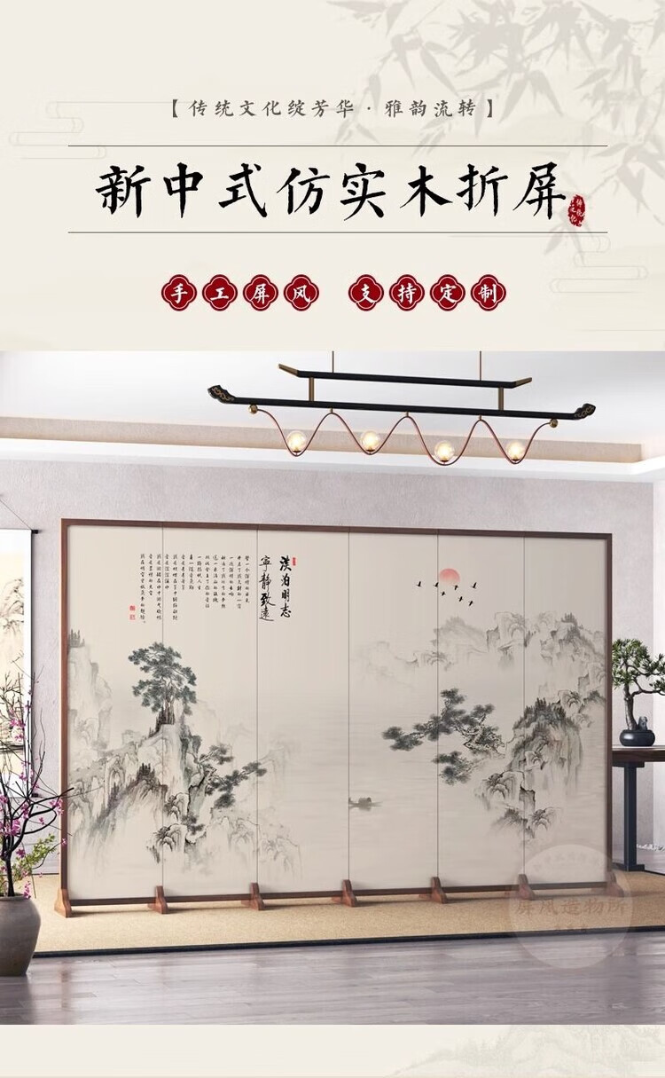 欣慕雅简约现代定制中式屏风隔断客厅遮挡玄关办公室酒店可折叠折屏隔挡 款式01 4扇夹板 【1.8米高*1.6米宽)