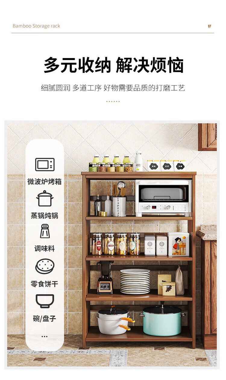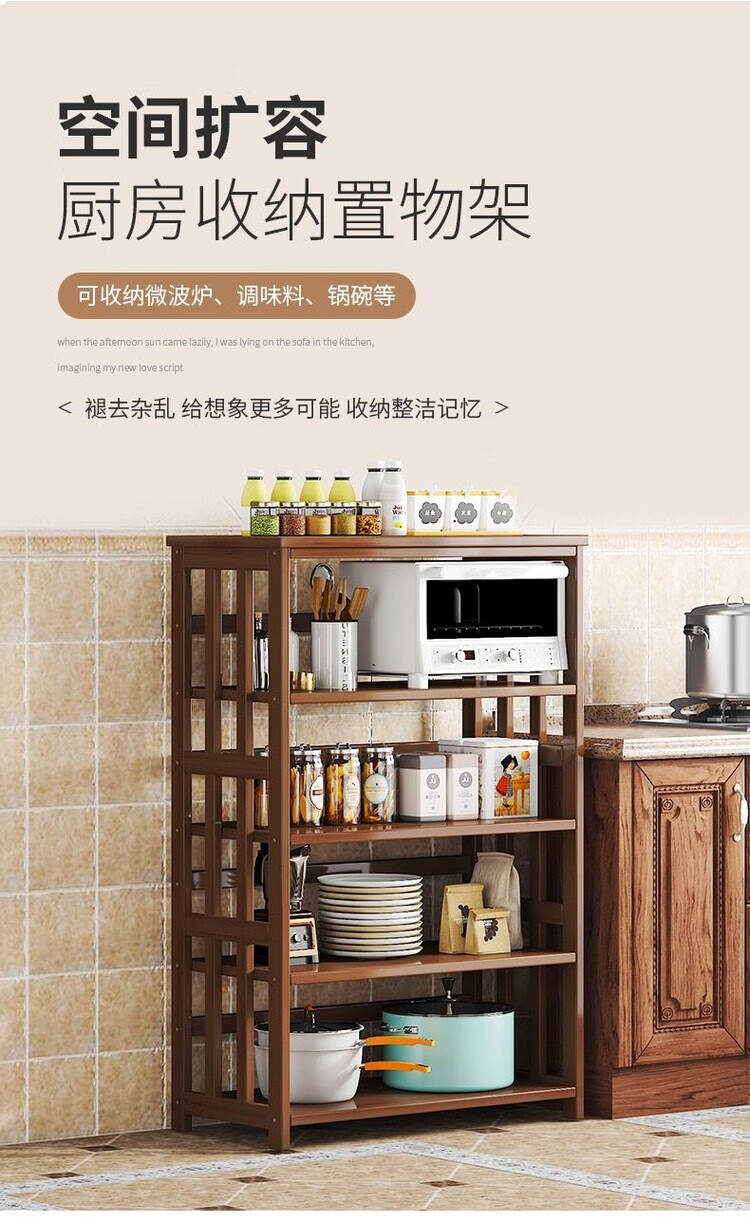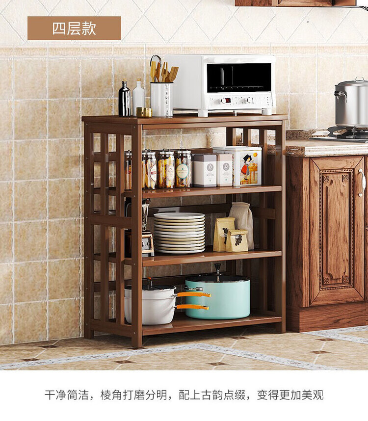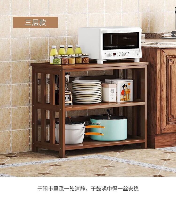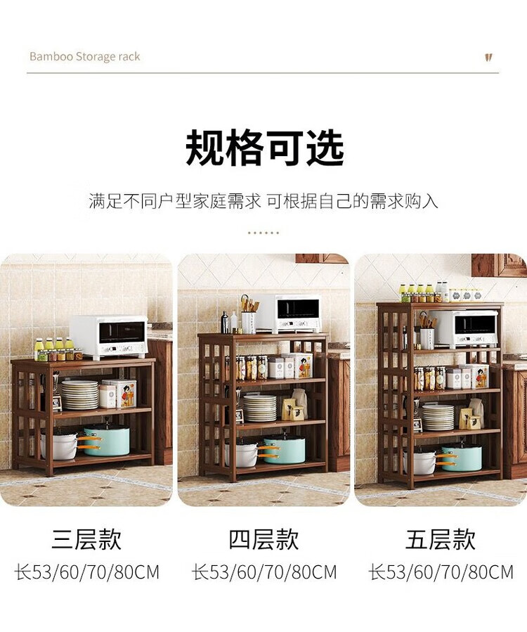 弘星隆楠竹厨房置物架微波炉烤箱收纳架客厅实木锅具用品多层储物柜落地 全竹实心板三层60长