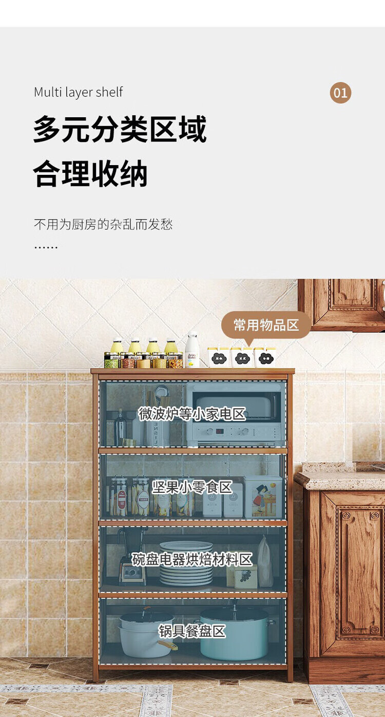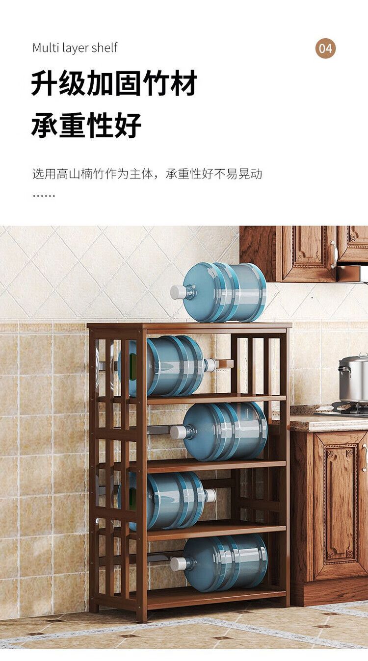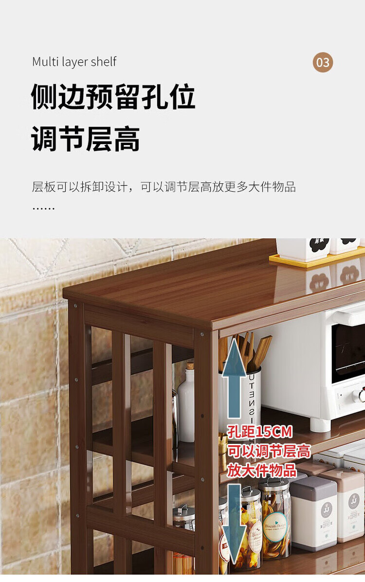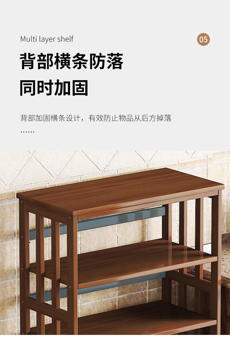 弘星隆楠竹厨房置物架微波炉烤箱收纳架客厅实木锅具用品多层储物柜落地 全竹实心板三层60长
