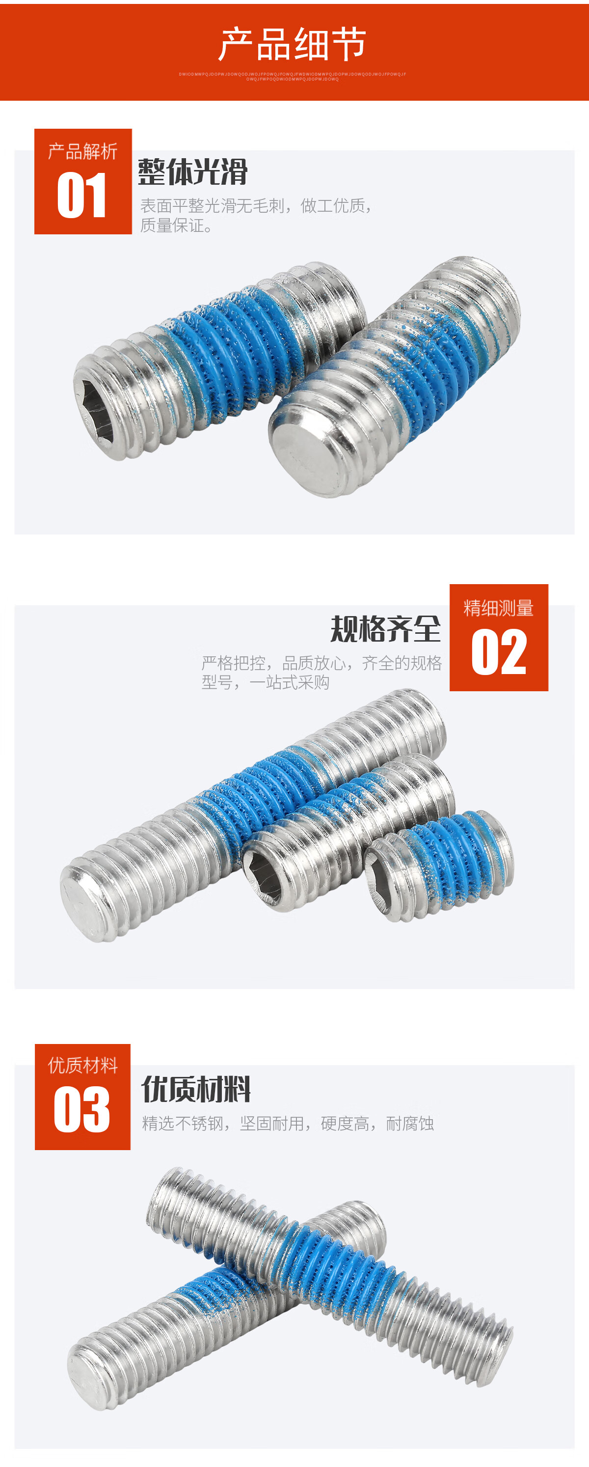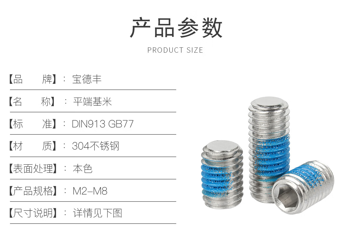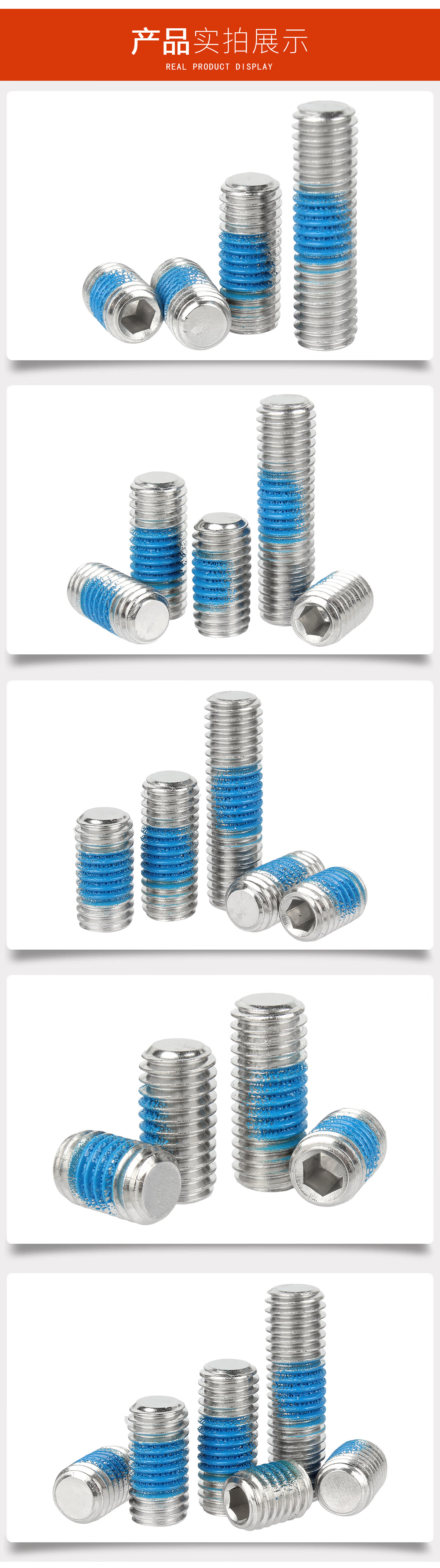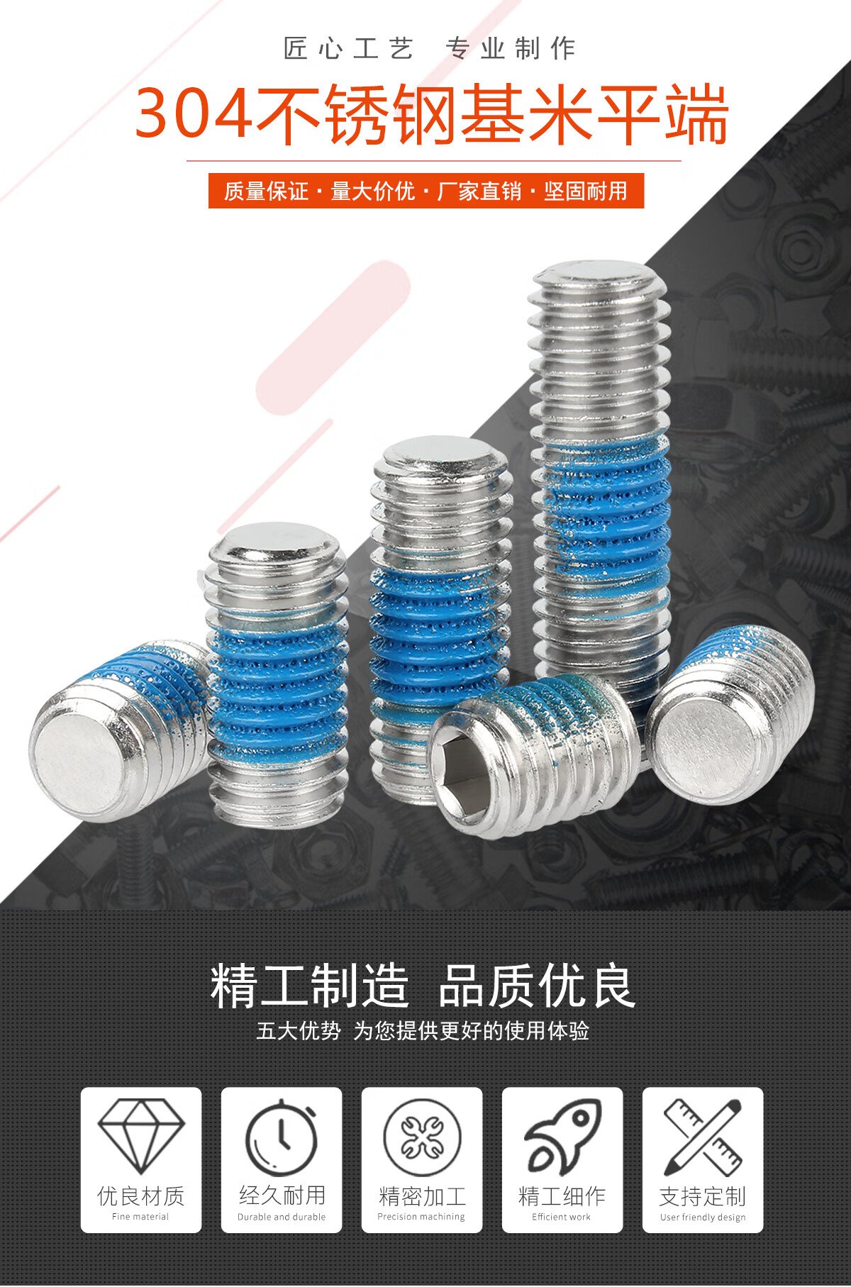 宝德丰304不锈钢内六角点胶平端紧定基米机米防松动涂蓝胶螺丝钉M2-M8 M2x3[50只]