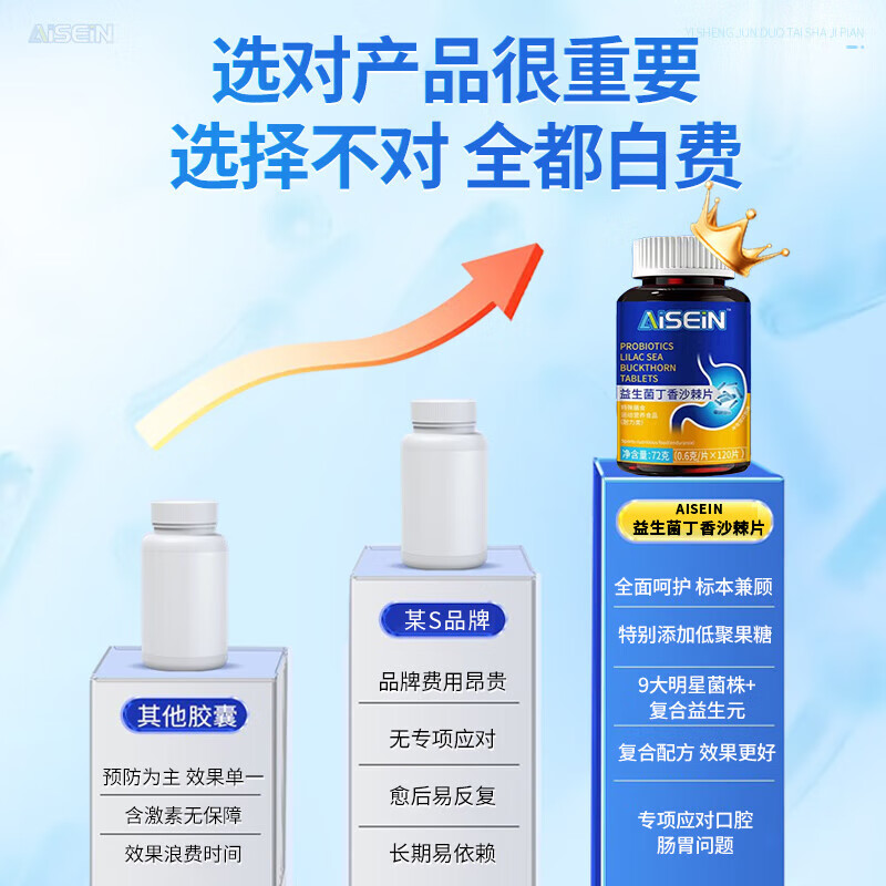 益生菌多肽沙棘片 口腔除口臭口气重嘴巴臭丁香口腔含片男女士 1瓶120片【加强装多瓶更划算】