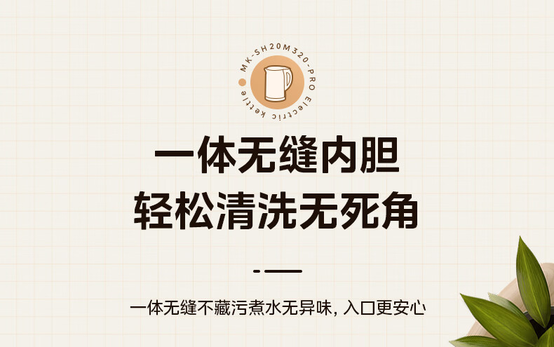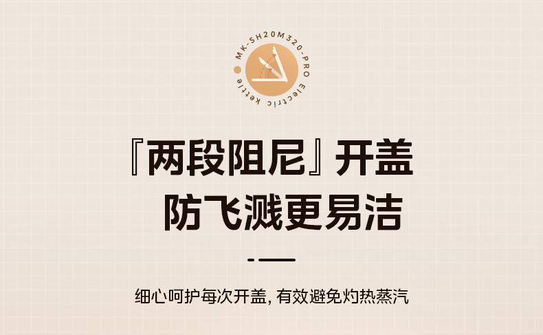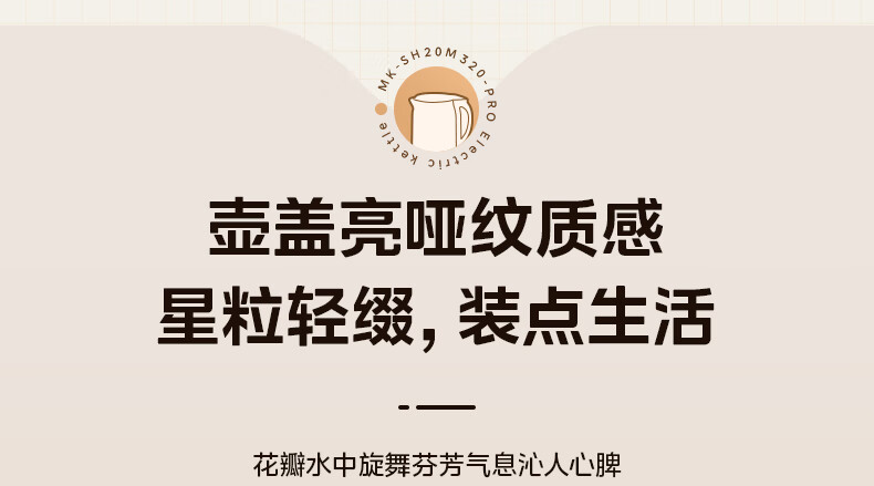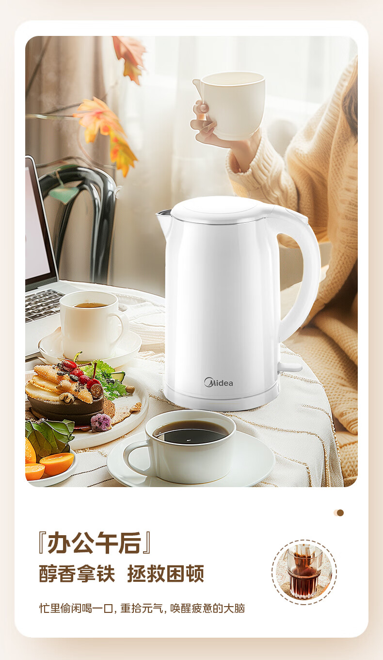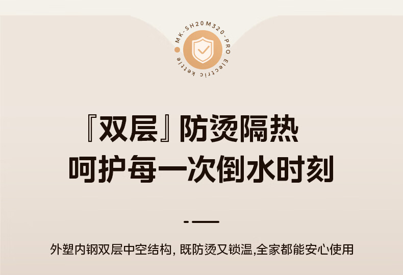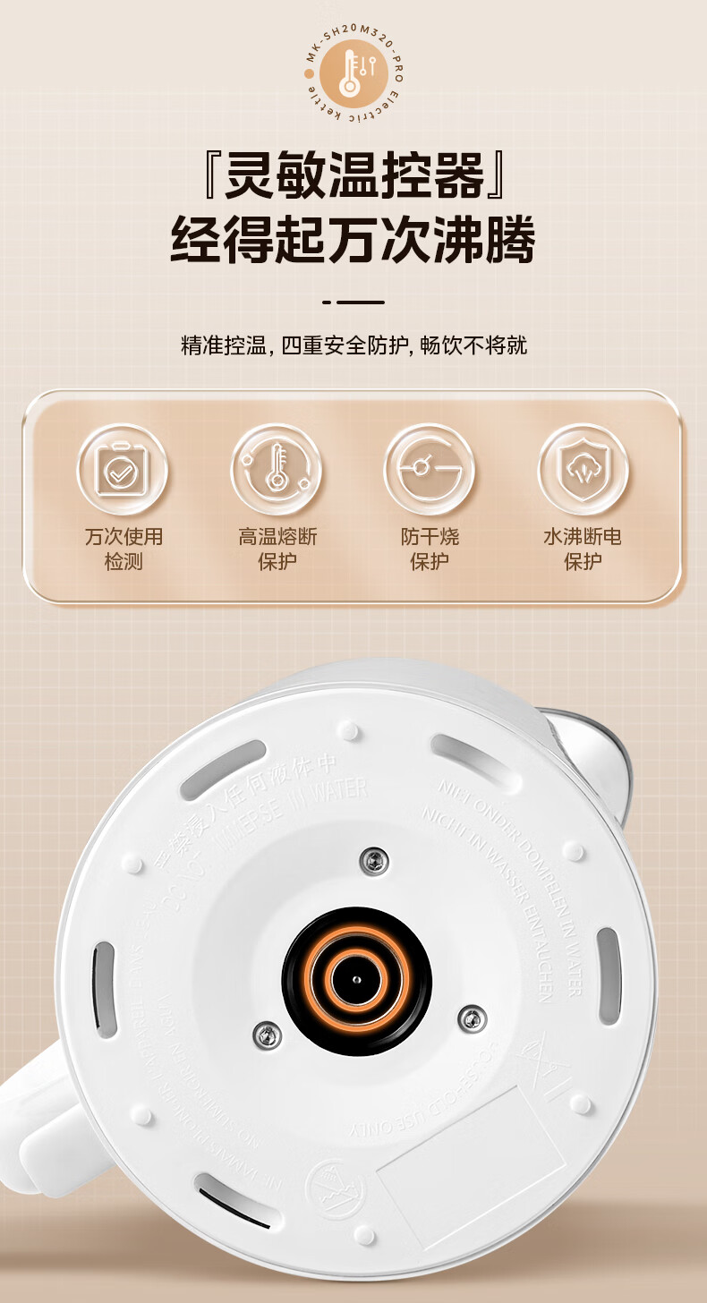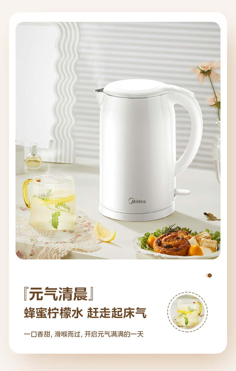 美的(Midea)烧水壶电水壶热水壶母婴级316L不锈钢 0涂层2升大容量开水壶 双层防烫 MK-SH20M320-PRO