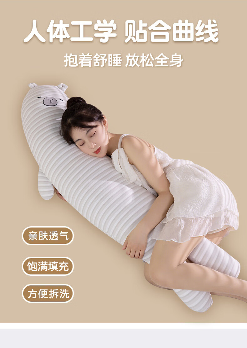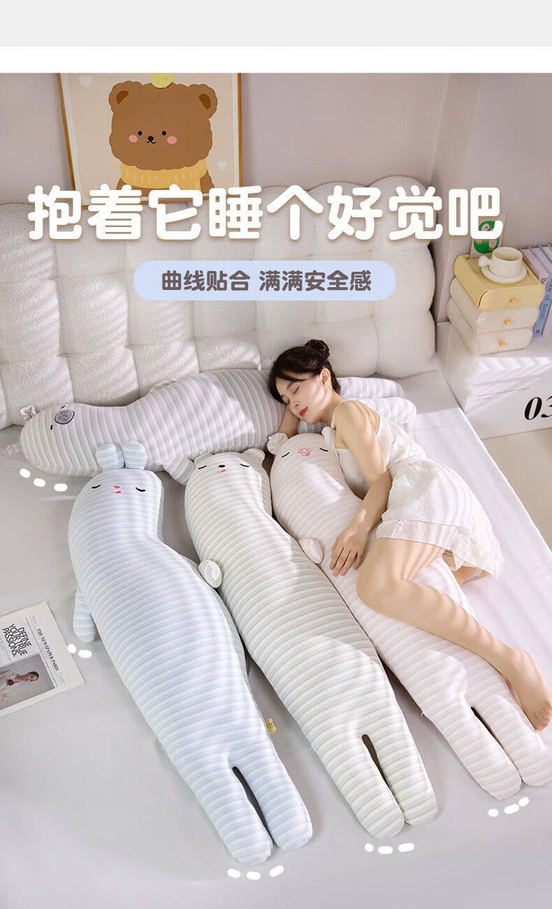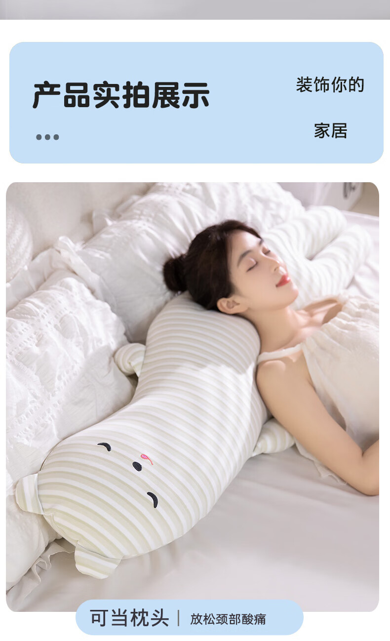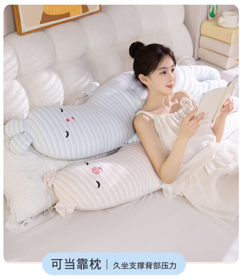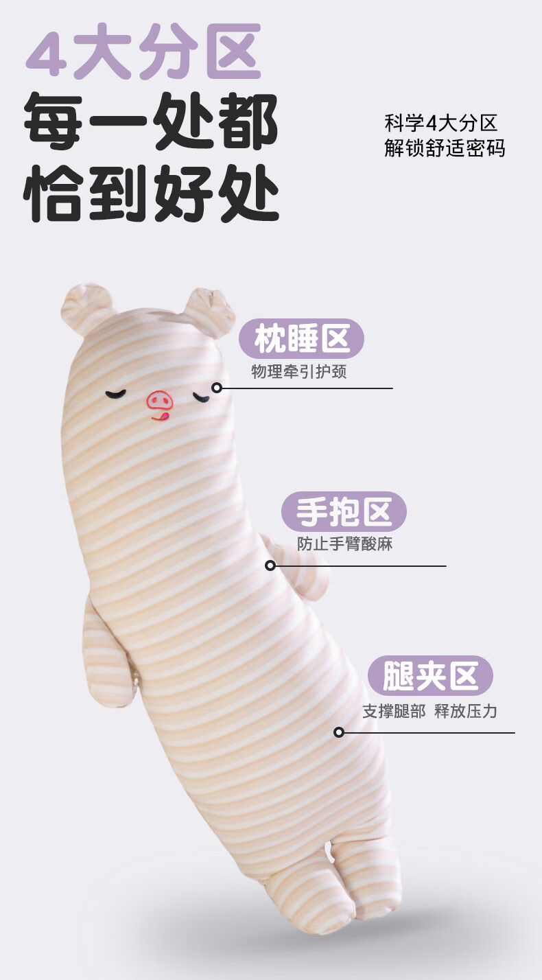 恒源祥长条抱枕针织棉玩偶家族抱睡枕女生睡觉专用夹腿侧睡抱枕长枕头 粉条小猪 90cm*20cm 含枕芯 【重1.3kg】
