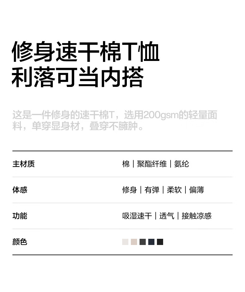 蕉内(Bananain)非常301Slim男女同款速干棉感正肩宽松短袖休闲T恤户外运动上衣新