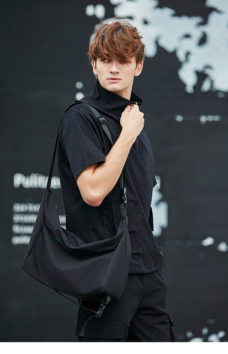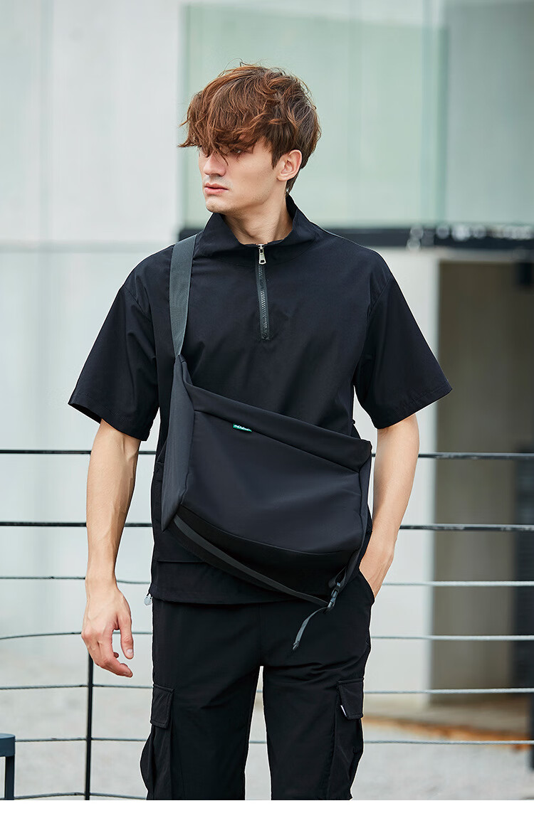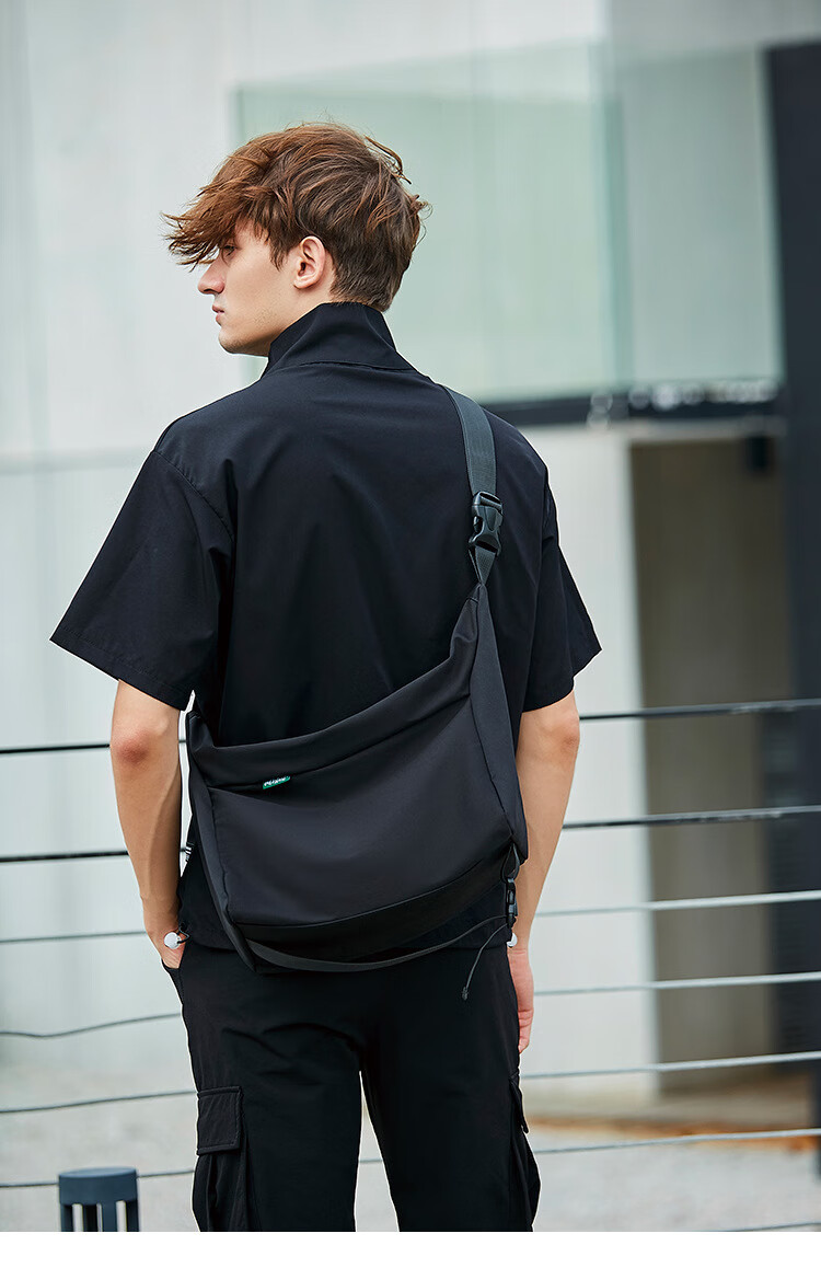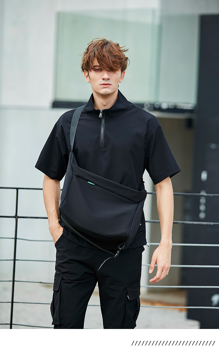 【厂家直供】单肩包潮流休闲斜挎包男学生挎包运动邮差包大容量斜 黑色