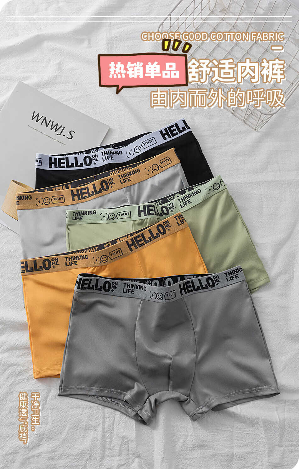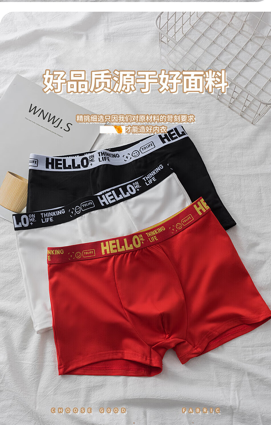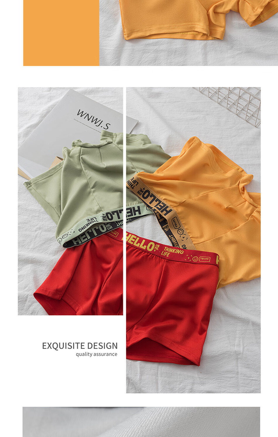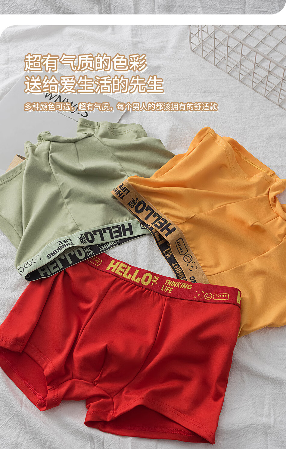 雅鹿男士内裤薄款透气夏季平角裤四角内裤时尚男式裤头青少年潮流 红色 4条 2XL 【建议115-130斤】