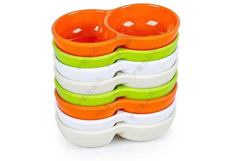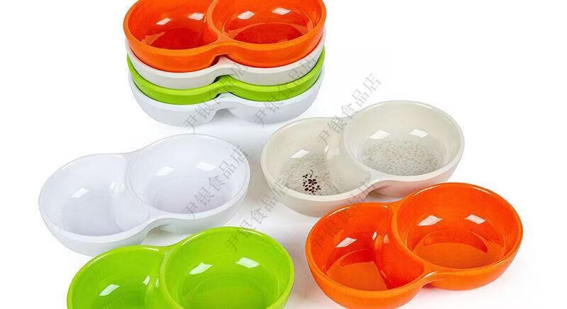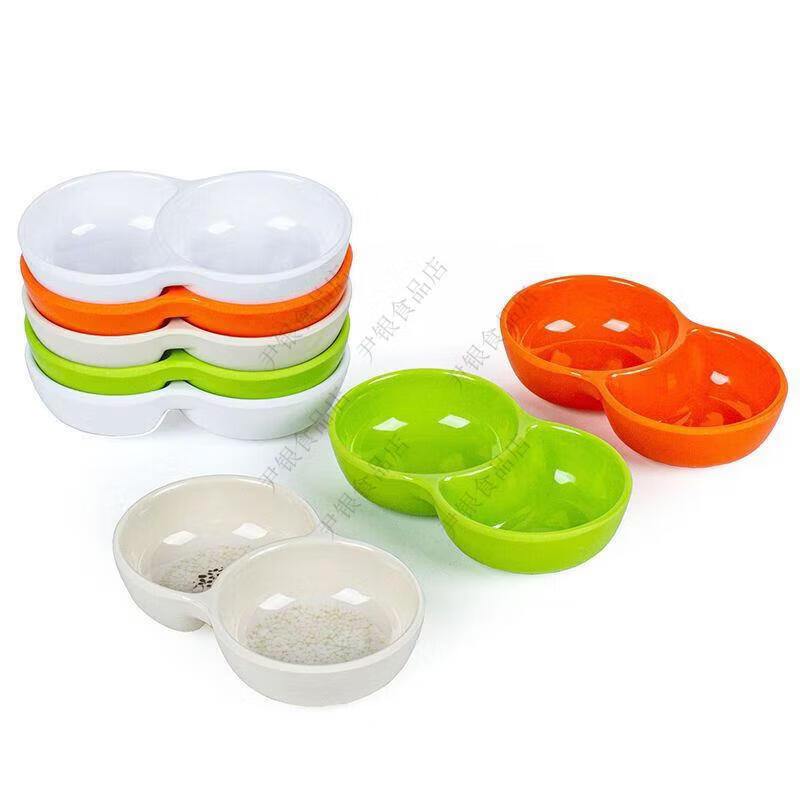 10个双格火锅店味碟蘸碟调料碟密胺仿瓷小碟自助蘸酱油醋碟子商用 双格碟--10个装 白色