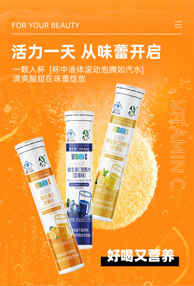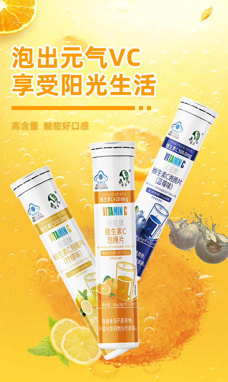 斯琦丽康 维生素C泡腾片成人营养素补充维生素C 成人 蓝帽认证 三种口味 【高含量VC】柠檬味VC泡腾片 【更实惠】3瓶