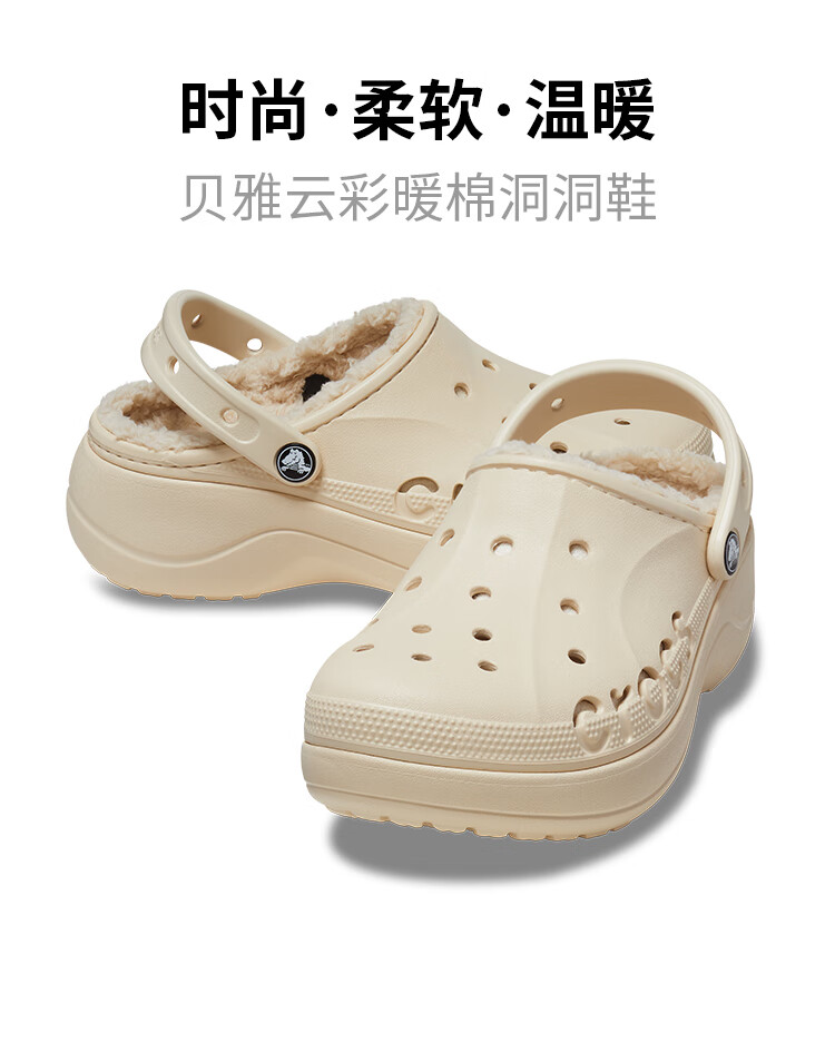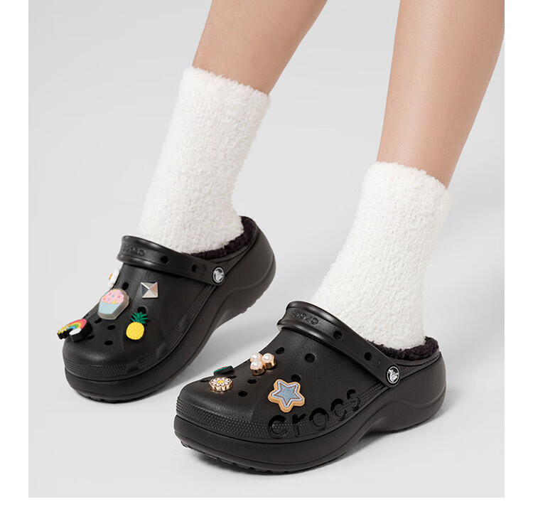 CROCS卡骆驰贝雅云彩暖棉洞洞鞋休闲棉鞋|208708 黑色-001 36 /37(230mm)