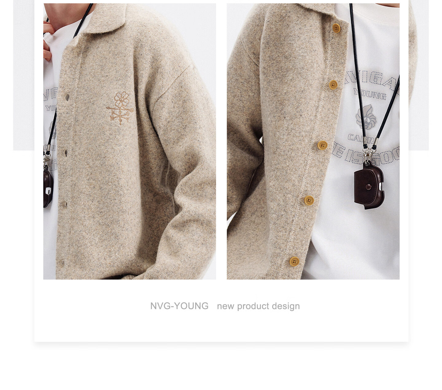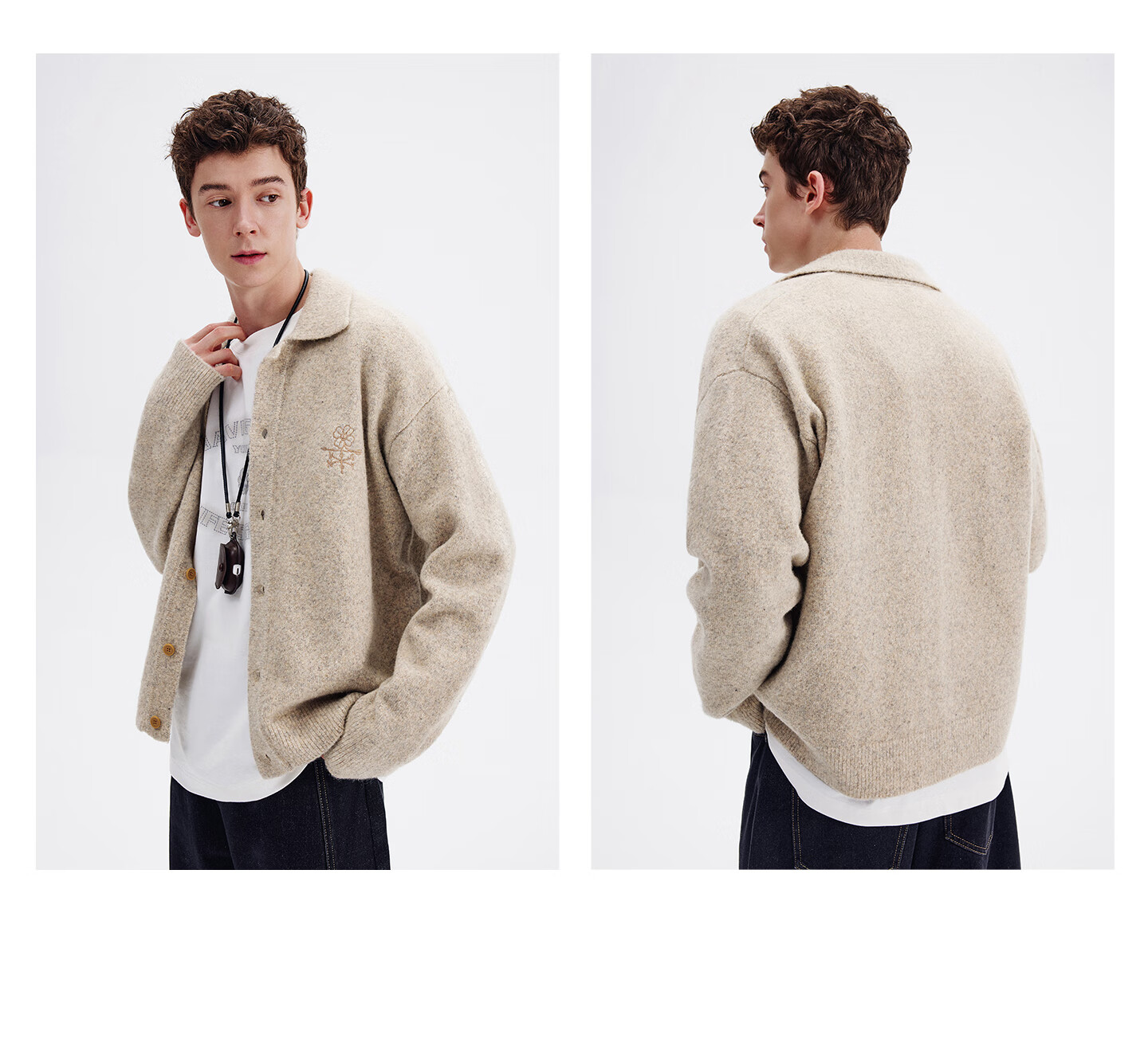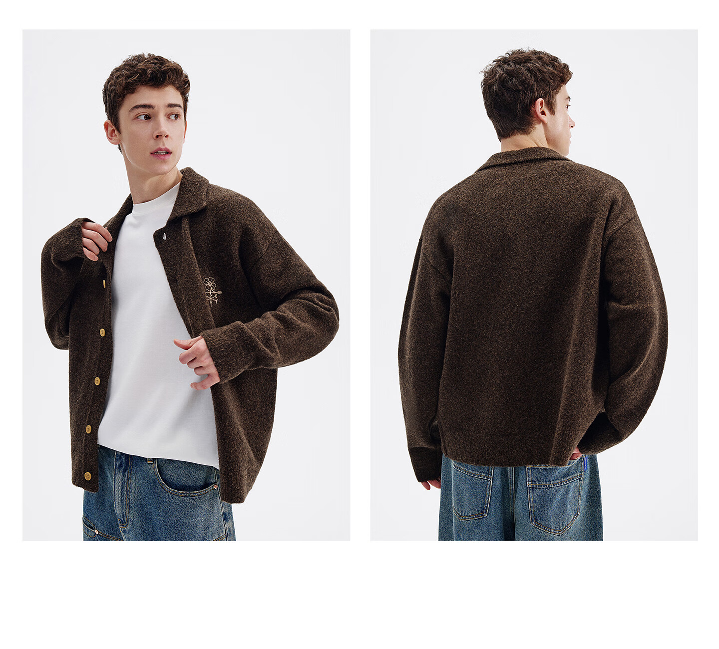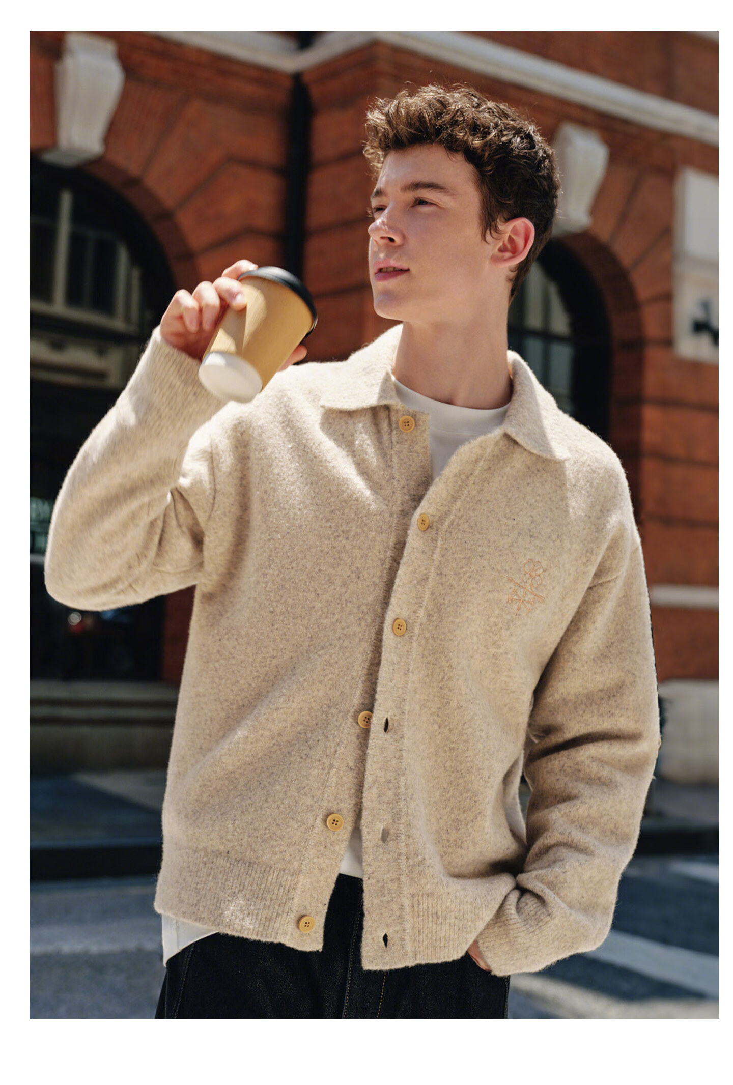 Navigare意大利小帆船微落肩羊毛衫男士针织开衫舒适亲肤毛衣外套休闲上衣 古巴砂 XL