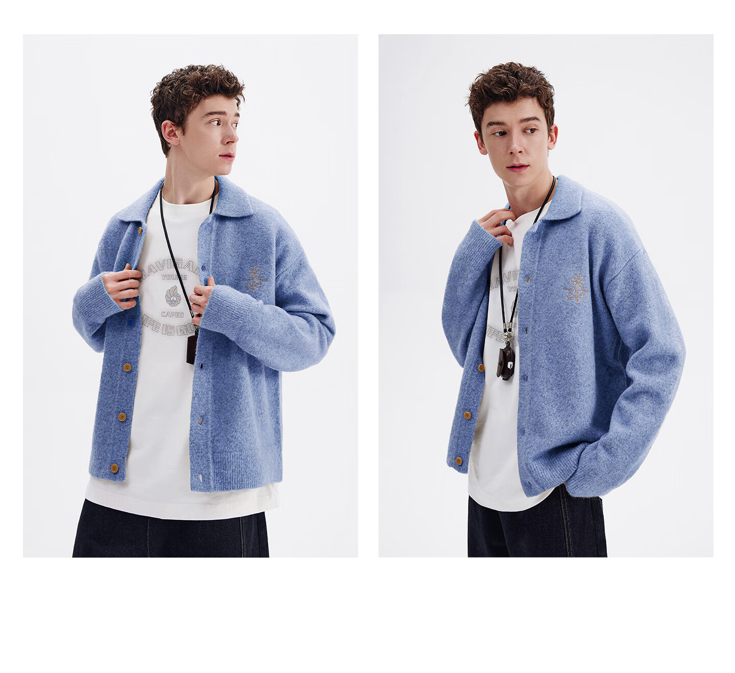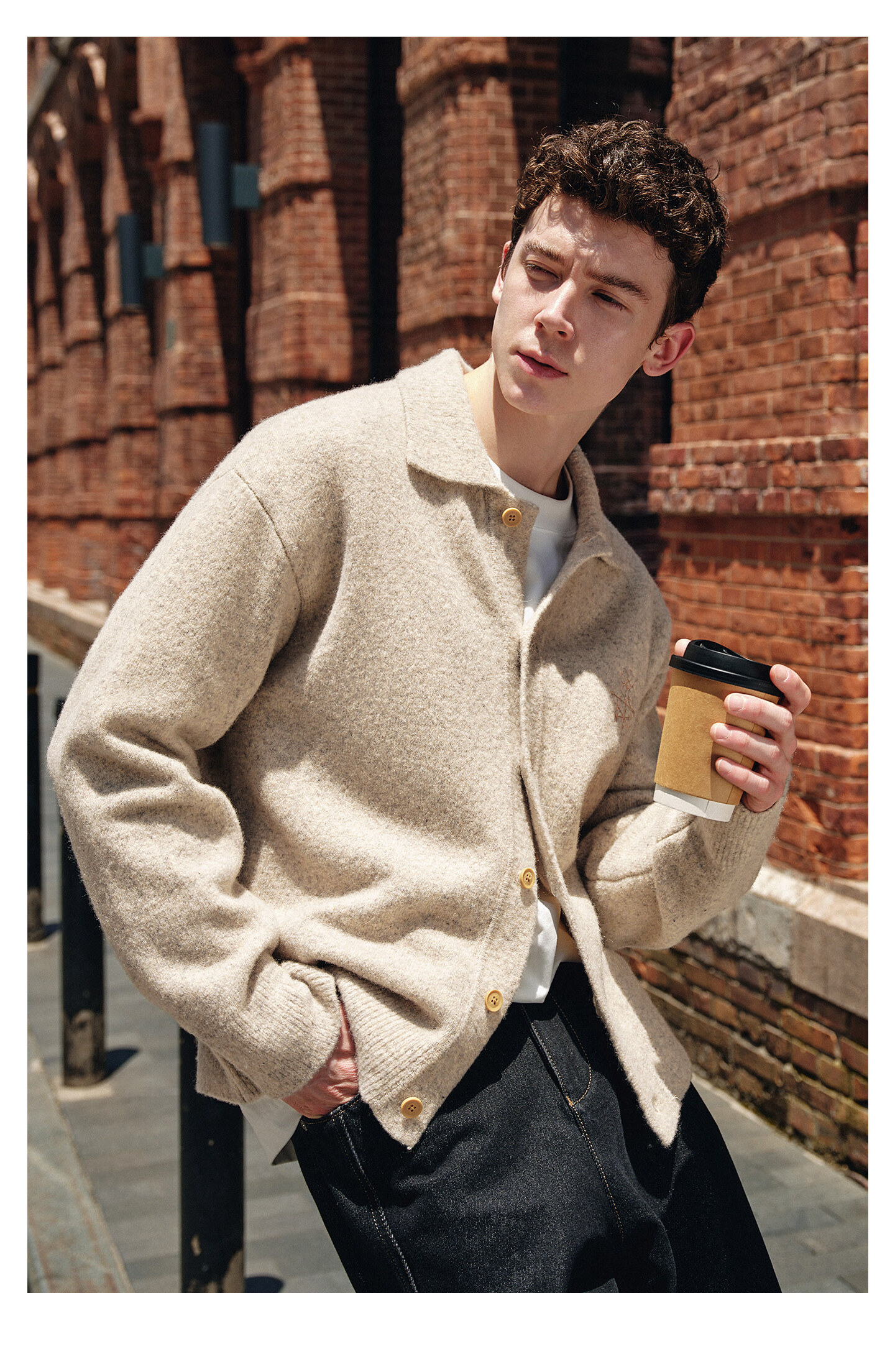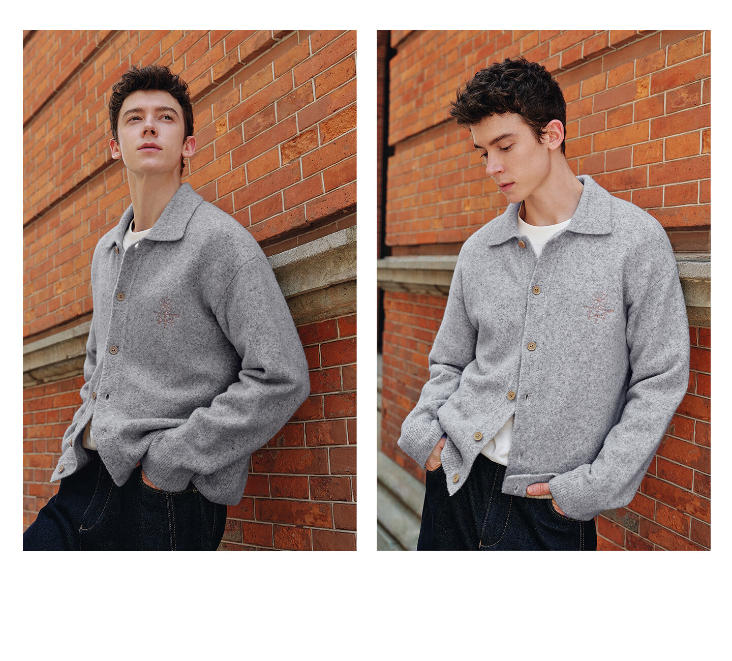 Navigare意大利小帆船微落肩羊毛衫男士针织开衫舒适亲肤毛衣外套休闲上衣 古巴砂 XL