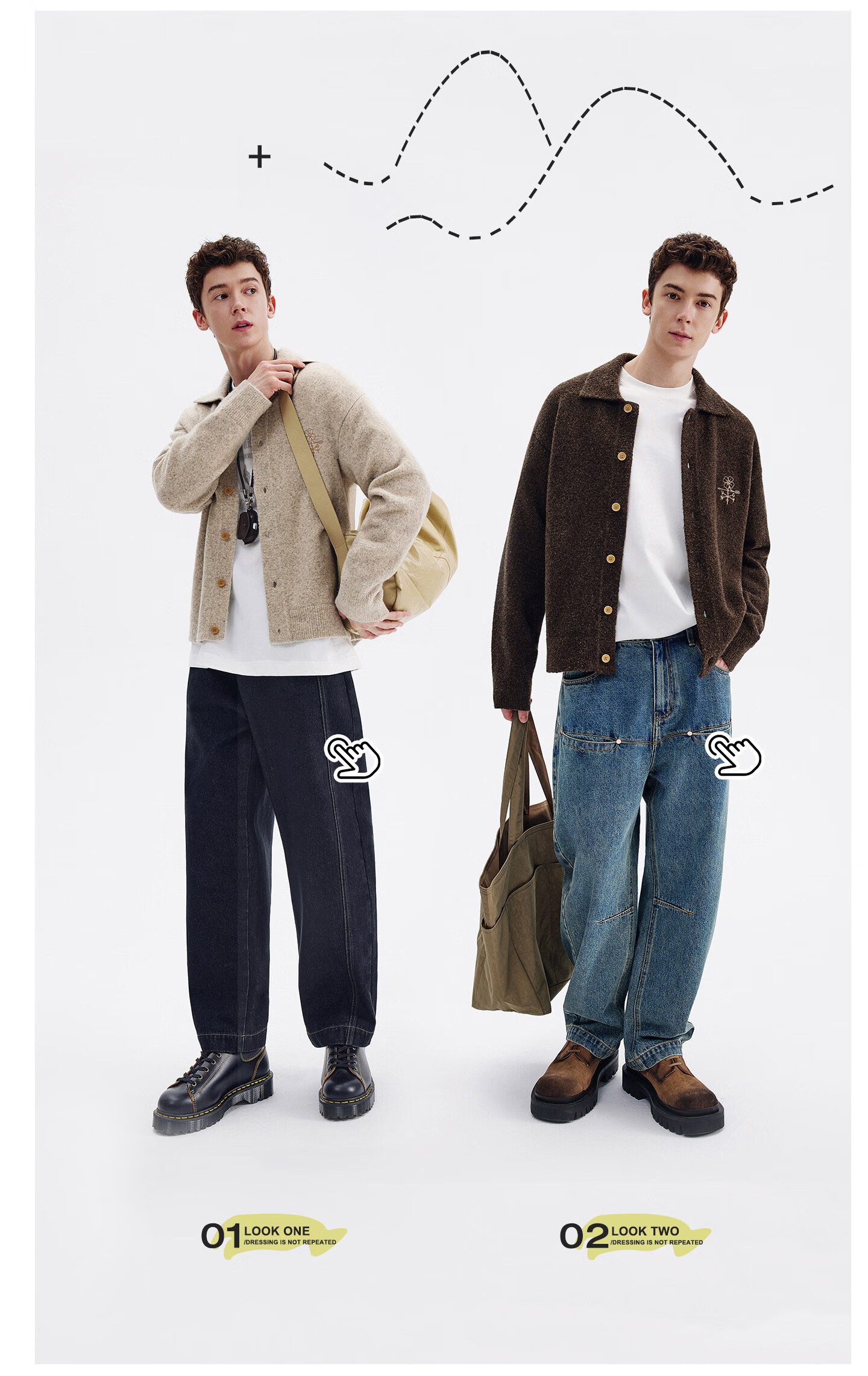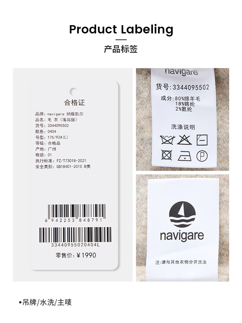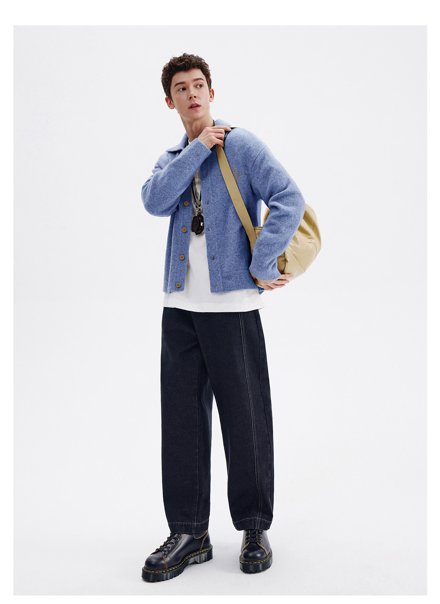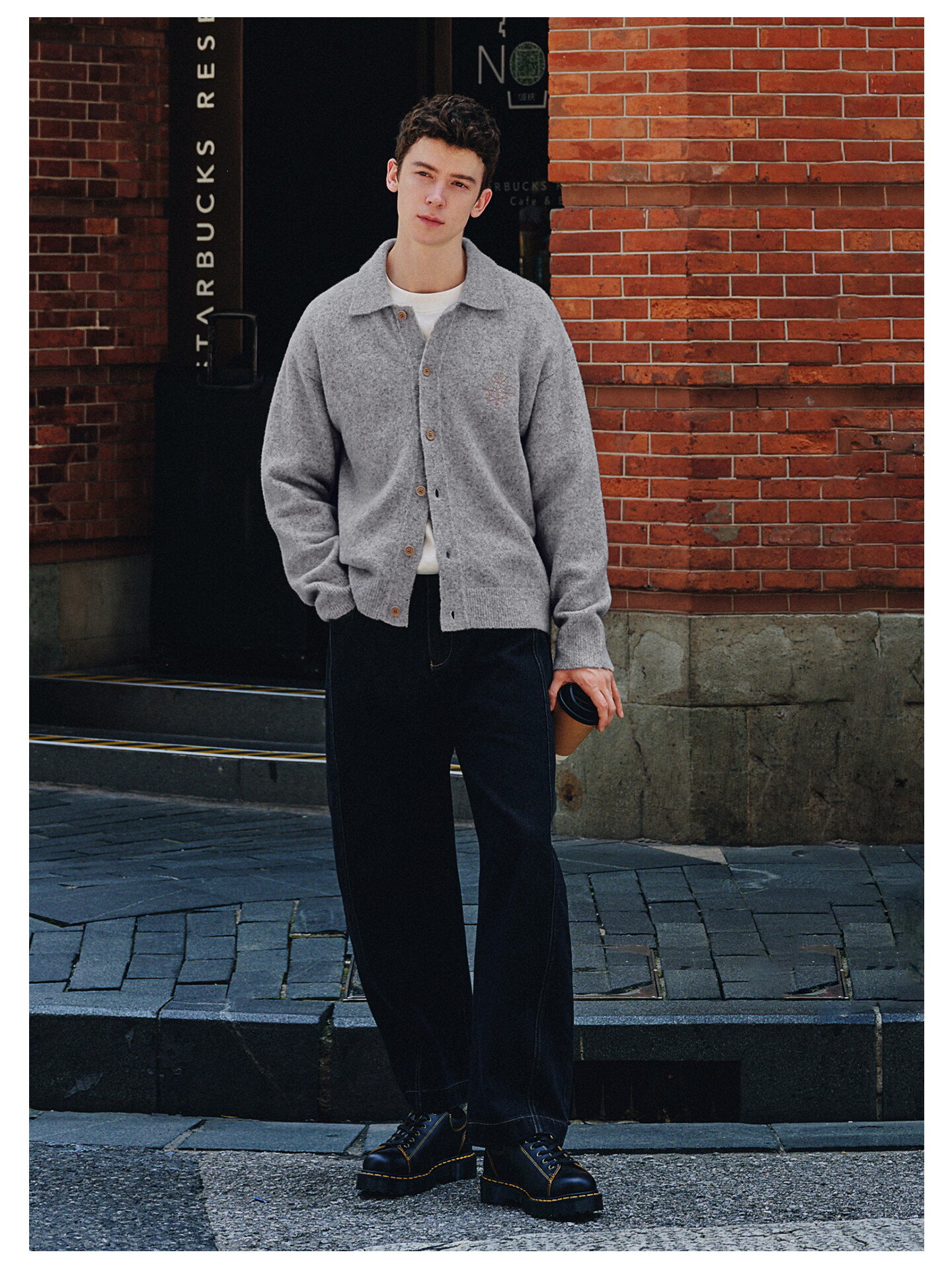 Navigare意大利小帆船微落肩羊毛衫男士针织开衫舒适亲肤毛衣外套休闲上衣 古巴砂 XL