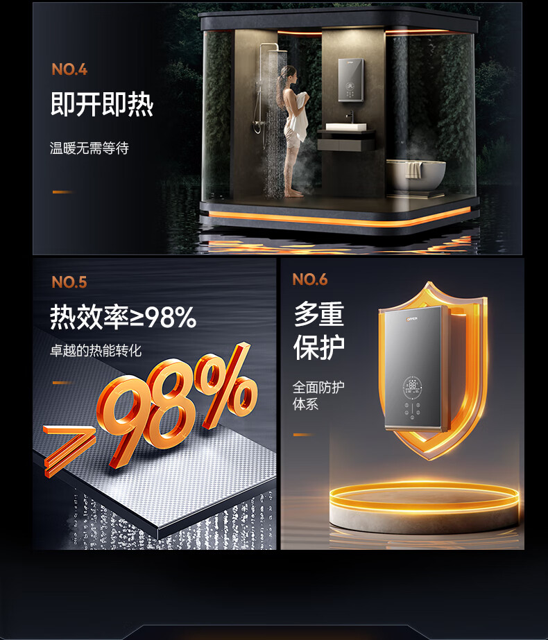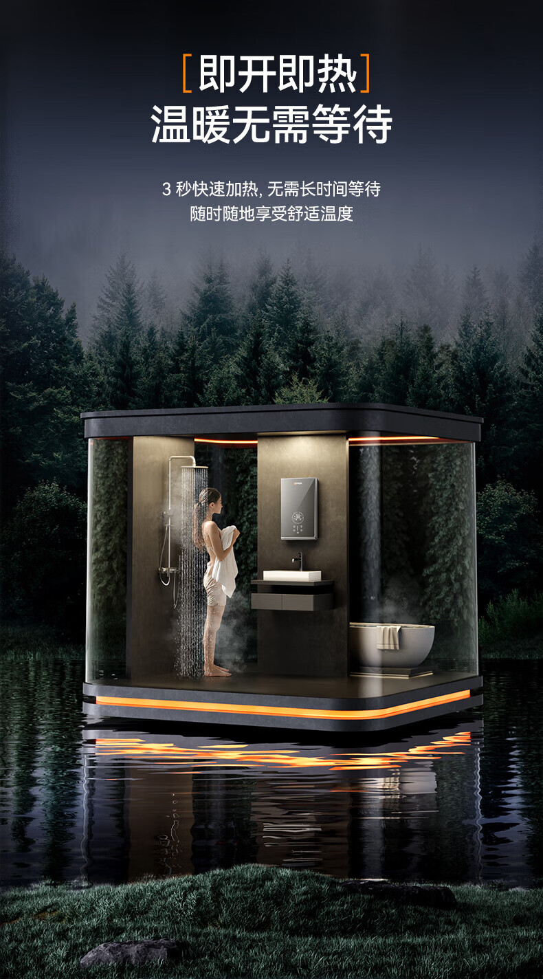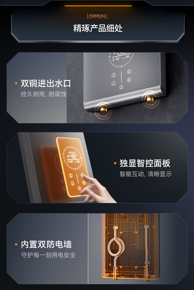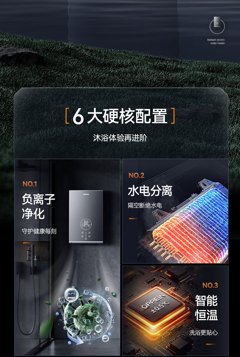 欧派(OPPEIN)电热水器即热式 速热小型家用智能恒温免储水厨房浴室超薄变频洗澡淋浴净化机 上门安装以旧换新 8500W OPP-H85M8