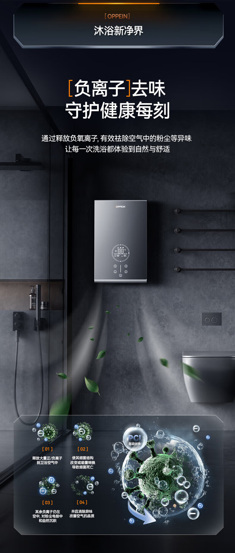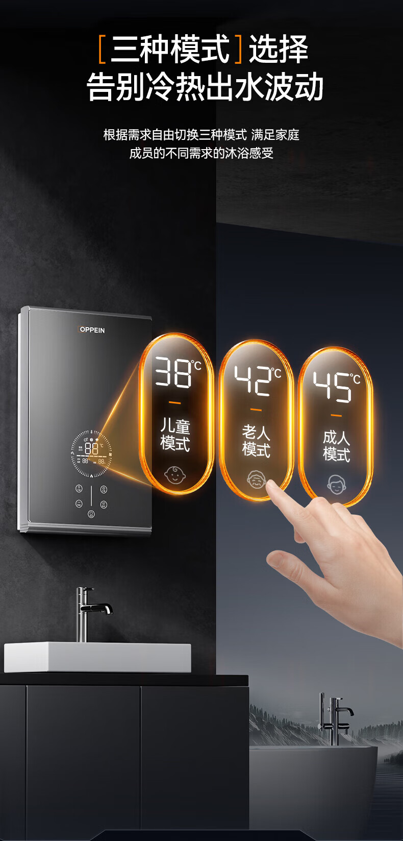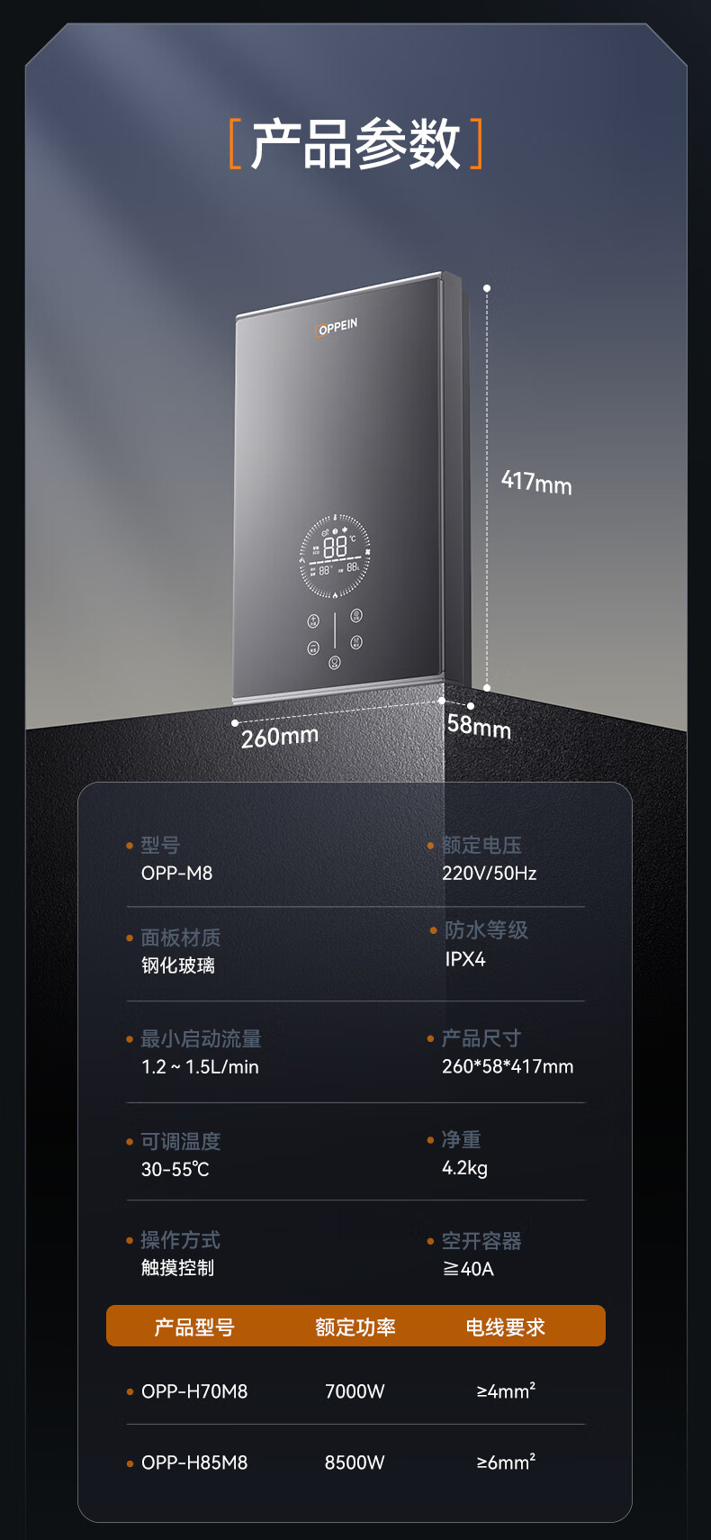 欧派(OPPEIN)电热水器即热式 速热小型家用智能恒温免储水厨房浴室超薄变频洗澡淋浴净化机 上门安装以旧换新 8500W OPP-H85M8