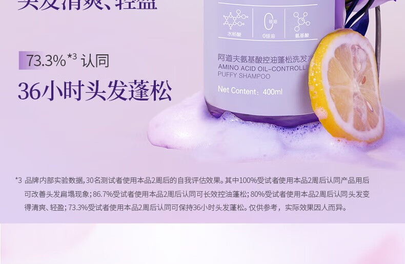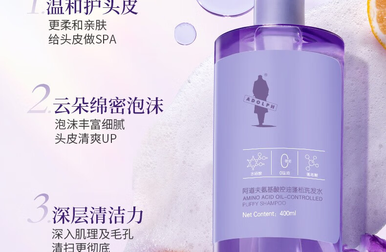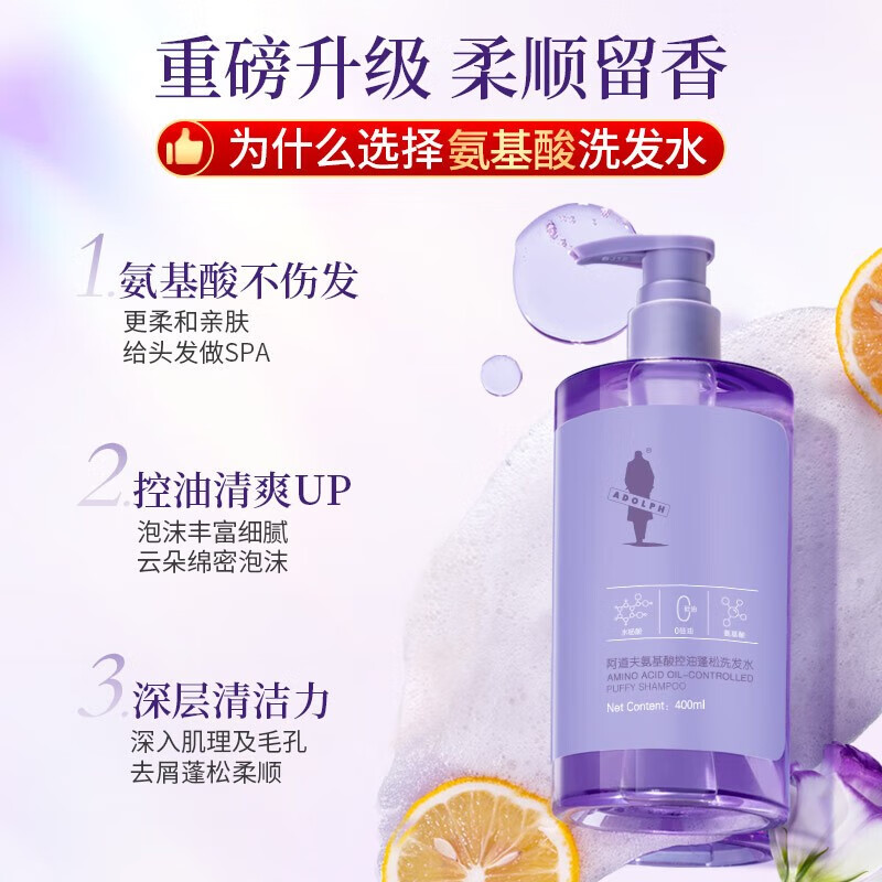 阿道夫洗发水氨基酸无硅油控油蓬松去屑男女通用清爽洗发露400ml 氨基酸洗发水400ml+20ml