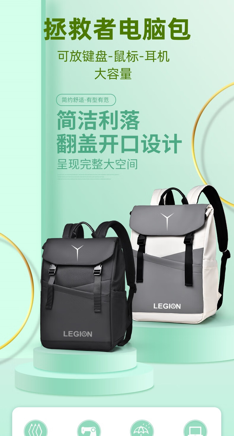 联想拯救者Y9000p电脑包16英寸Y7000p笔记本双肩书包Y9000K游戏本 升级款灰色 白Y logo 16英寸