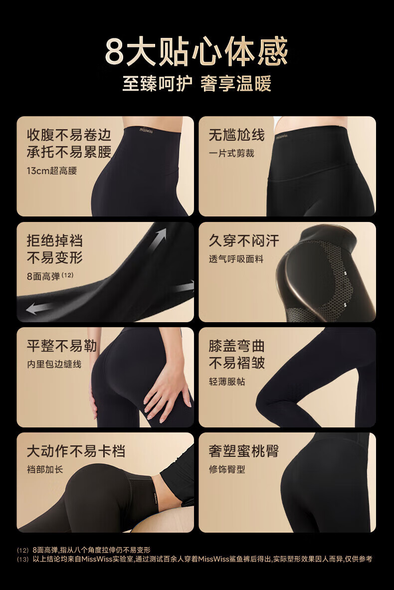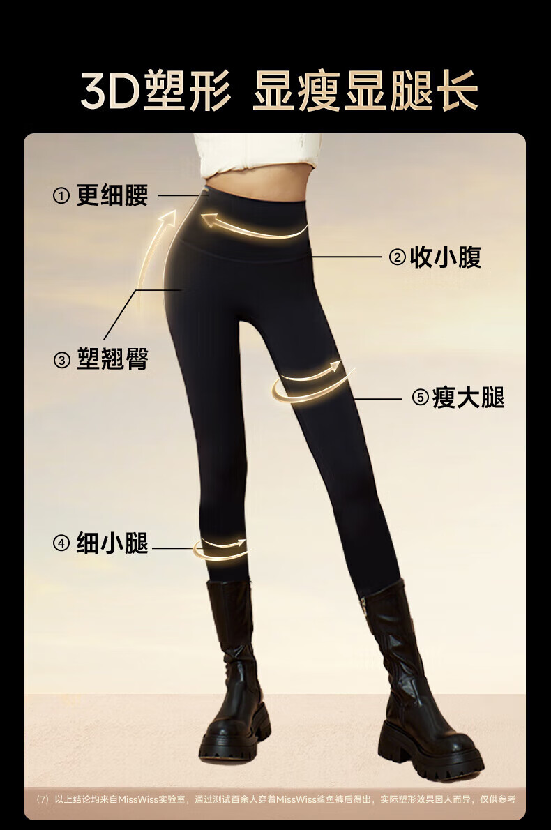MissWiss6s含羊绒鲨鱼裤女外穿秋冬款提臀收腹外穿加绒打底运动瑜伽裤 厚绒款【女神黑】 L (111-125斤)