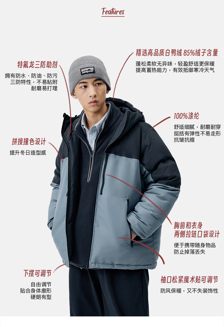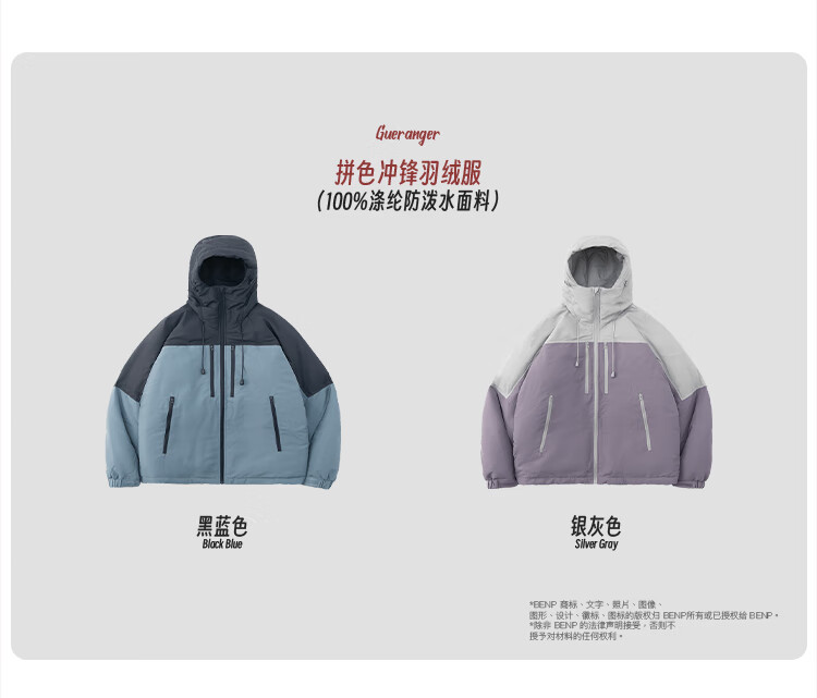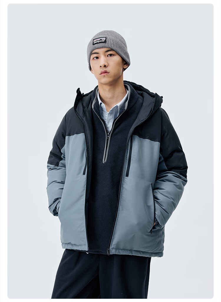 熊猫·本(ben.panda)日系百搭秋冬保暖连帽羽绒服工装加厚休闲外套情侣 黑蓝色 XL