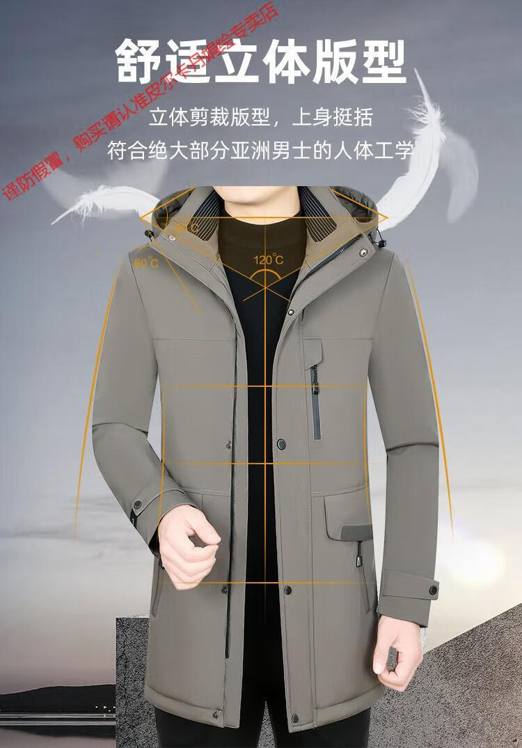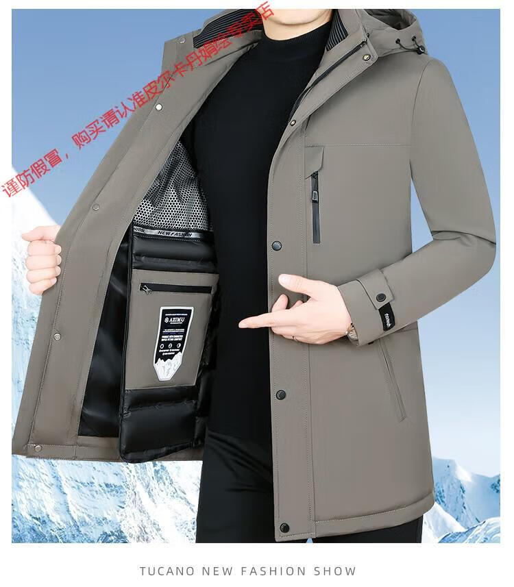 皮尔卡丹(pierre cardin)高档羽绒服男外套秋冬款中长款鹅绒连帽可拆卸内胆加厚三防派克服 69518卡其石墨烯内胆可拆卸 4XL (190-200斤)