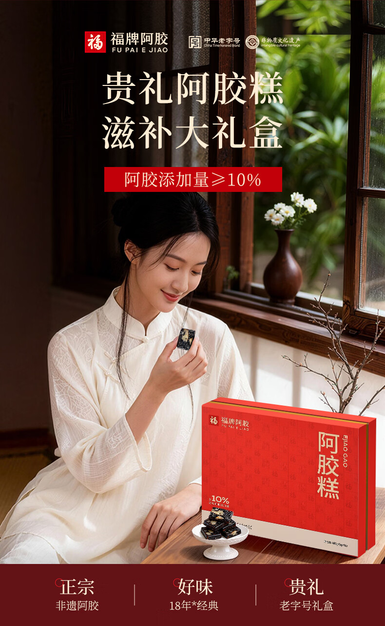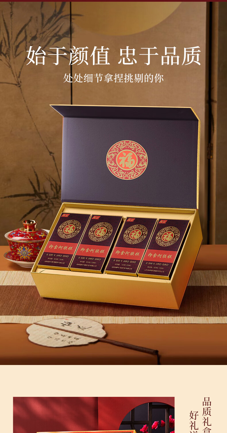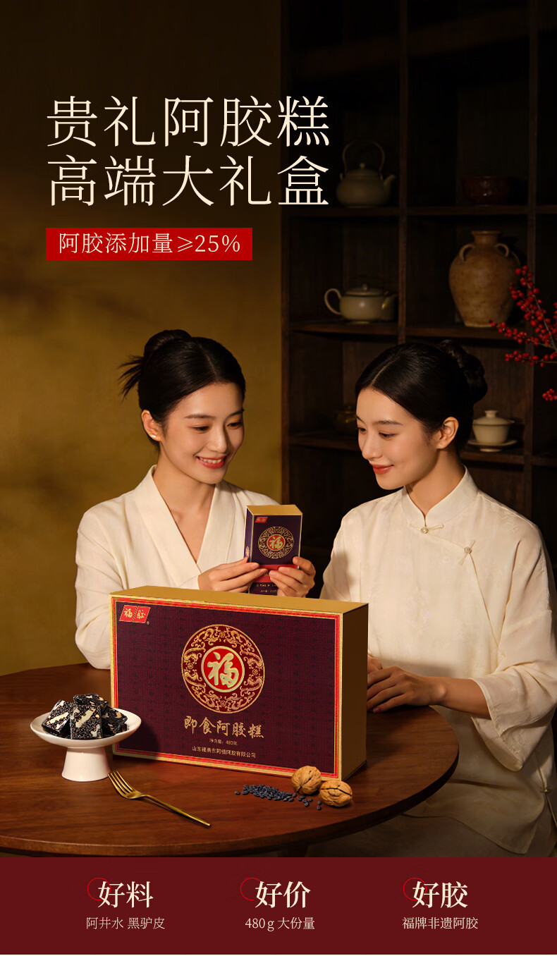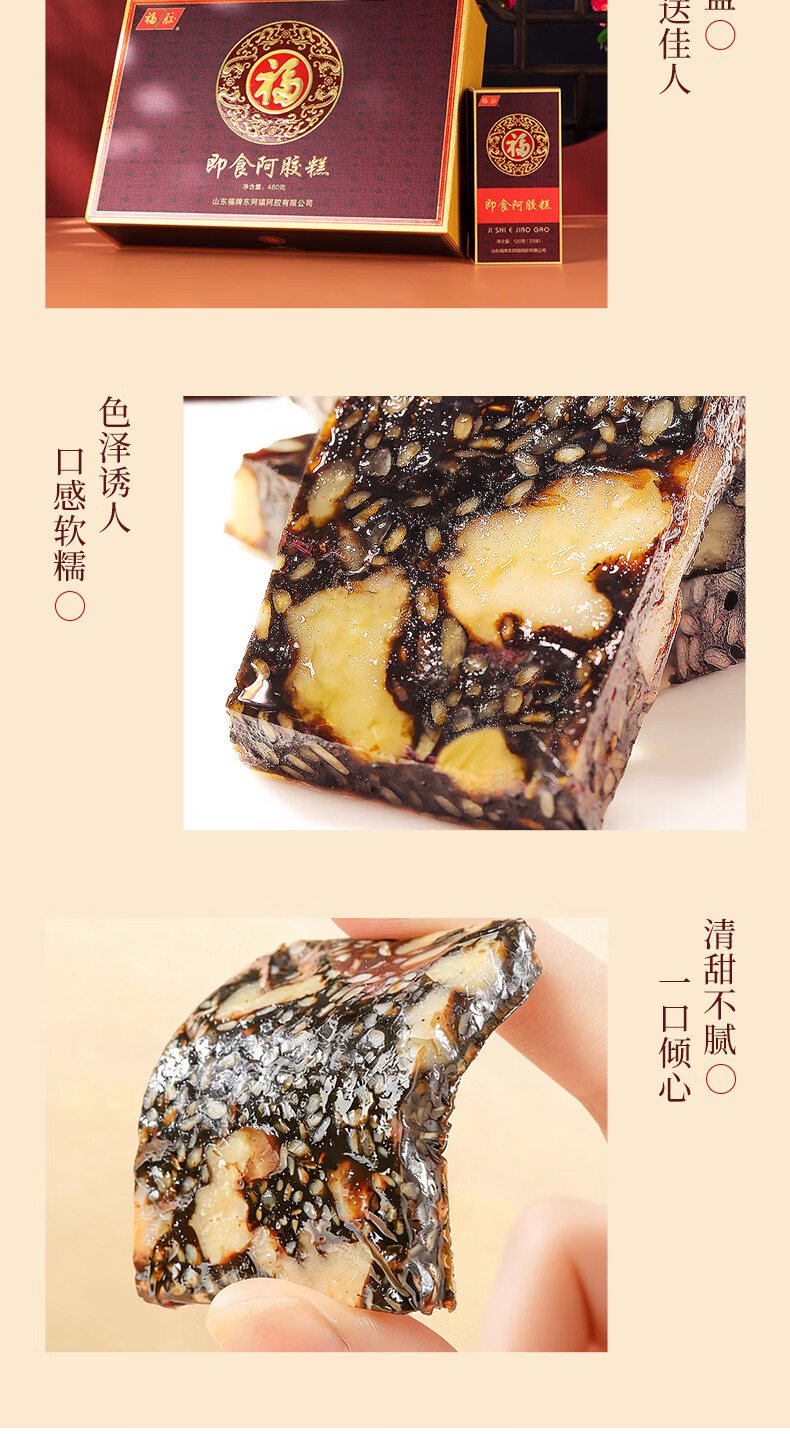 福牌阿胶即食阿胶糕礼盒480g(阿胶添加25%)礼盒装送长辈送父母妈妈礼物 480g*1盒 [阿胶添加10%]送礼袋