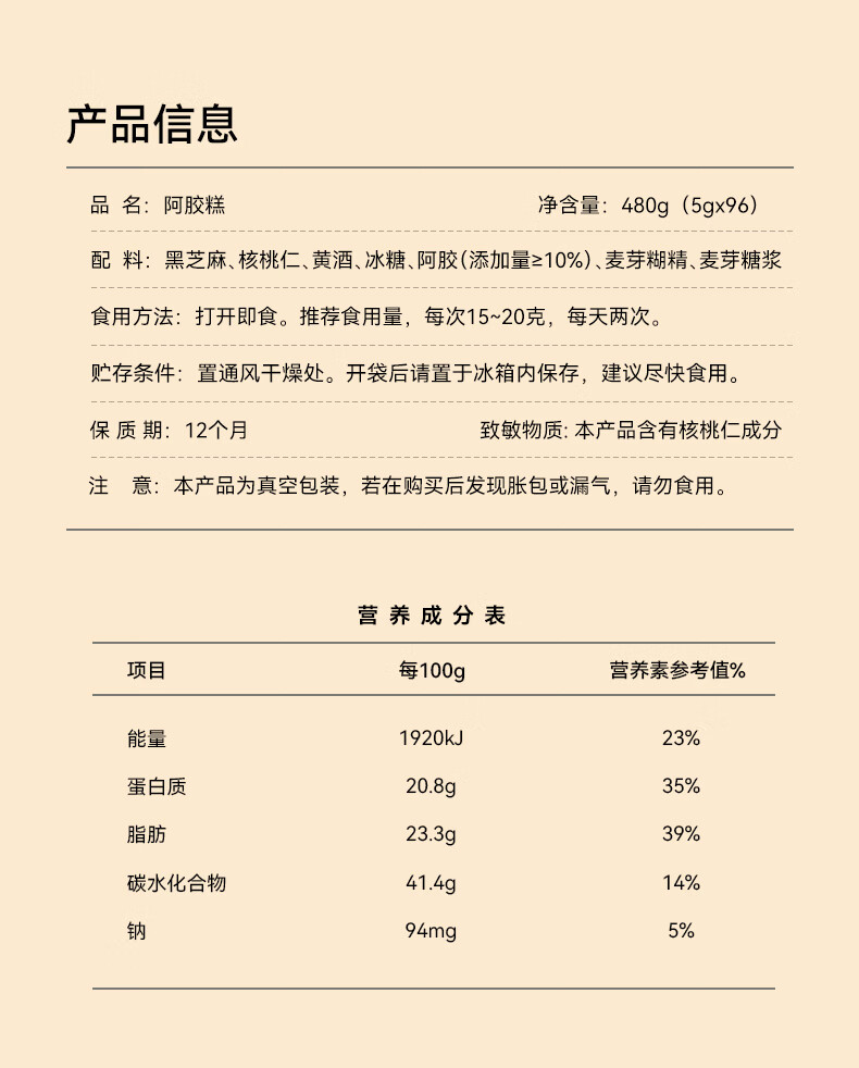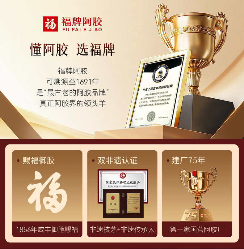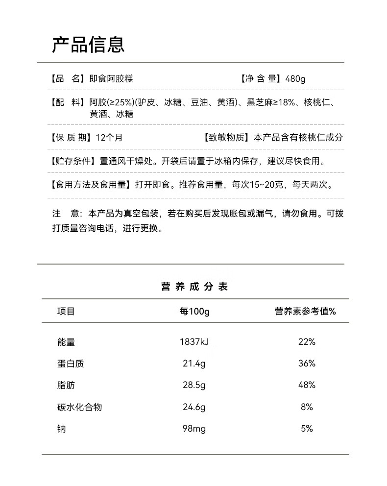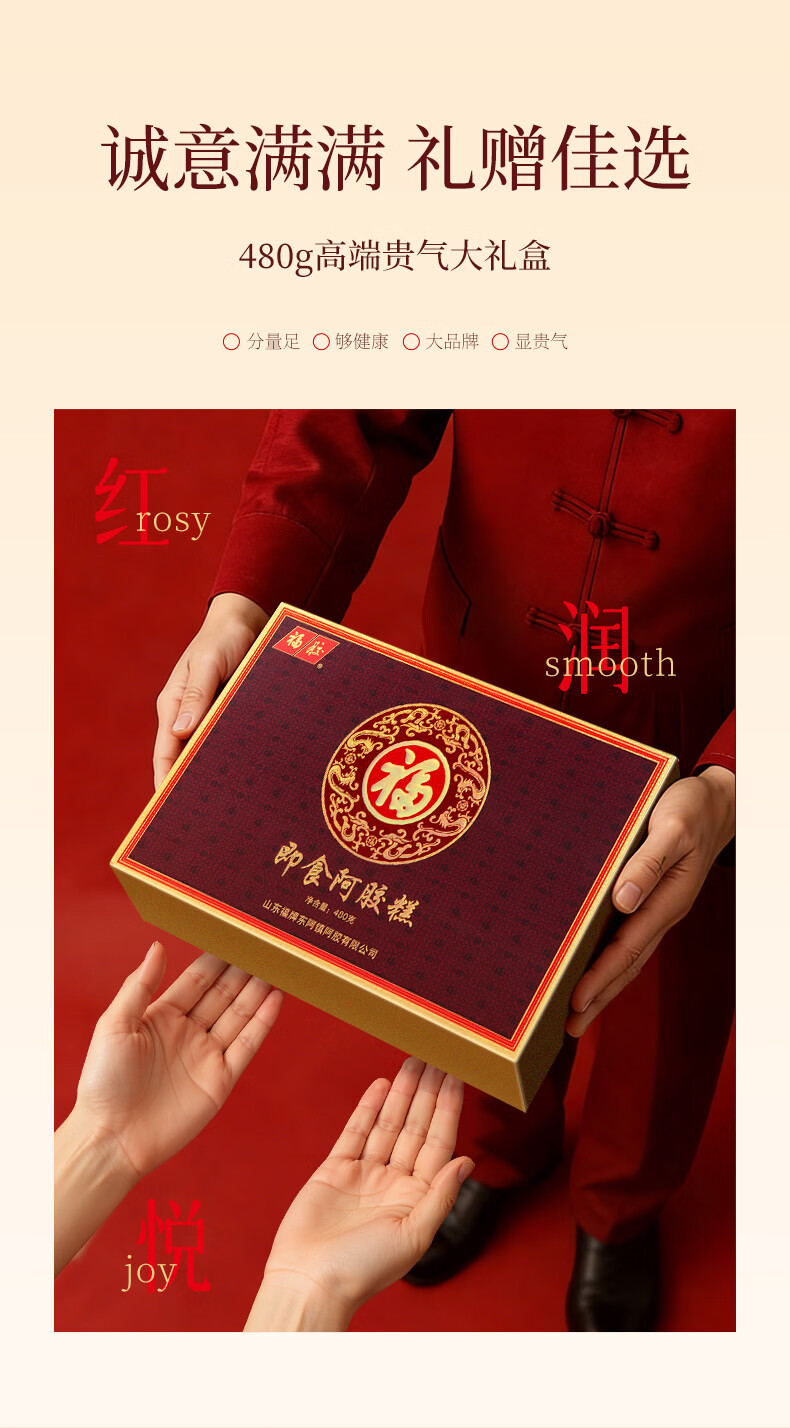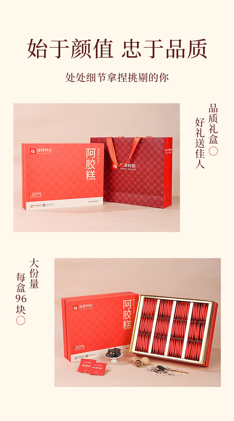 福牌阿胶即食阿胶糕礼盒480g(阿胶添加25%)礼盒装送长辈送父母妈妈礼物 480g*1盒 [阿胶添加10%]送礼袋