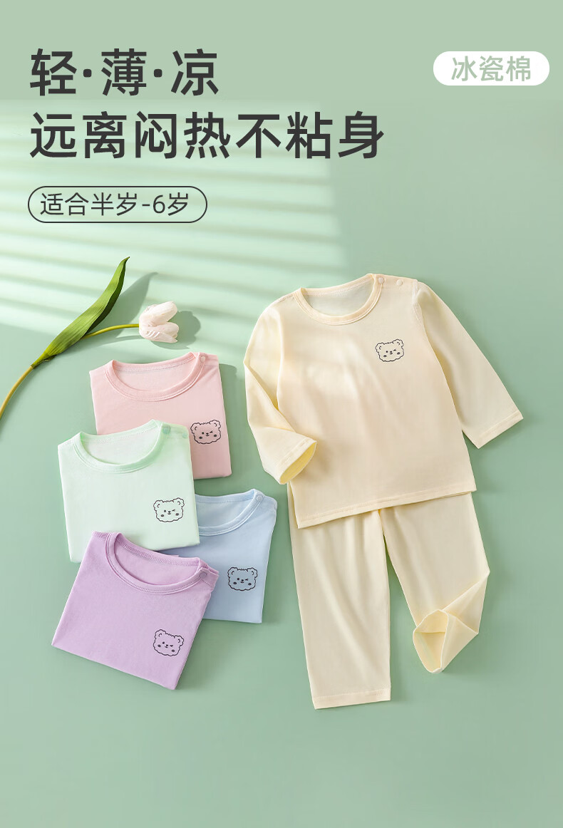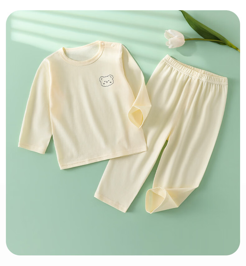 wua·wua儿童睡衣男女宝宝夏季空调服婴儿纯棉长袖长裤家居服套装 黄+粉-更划算 110