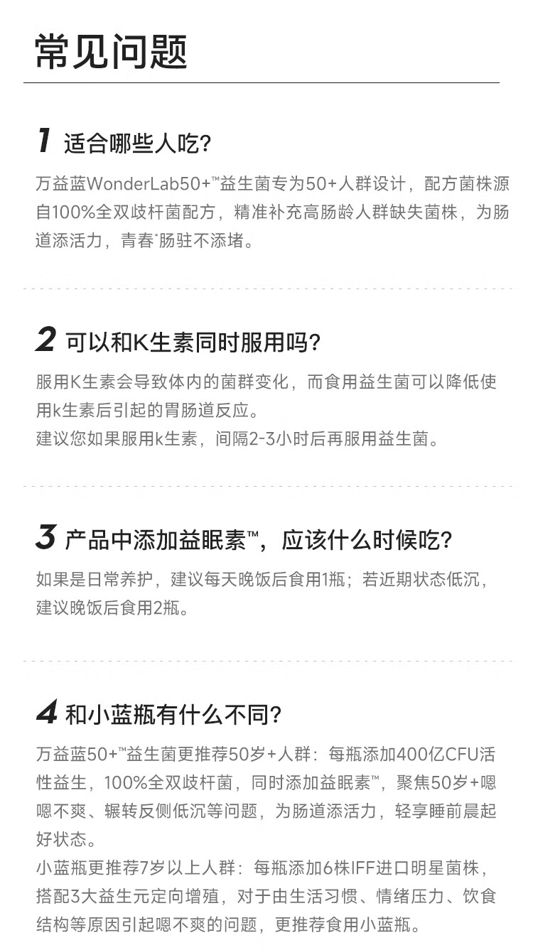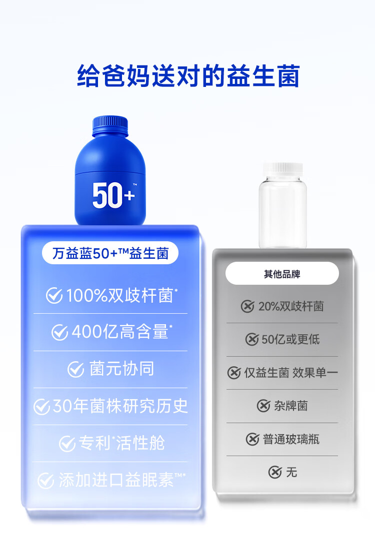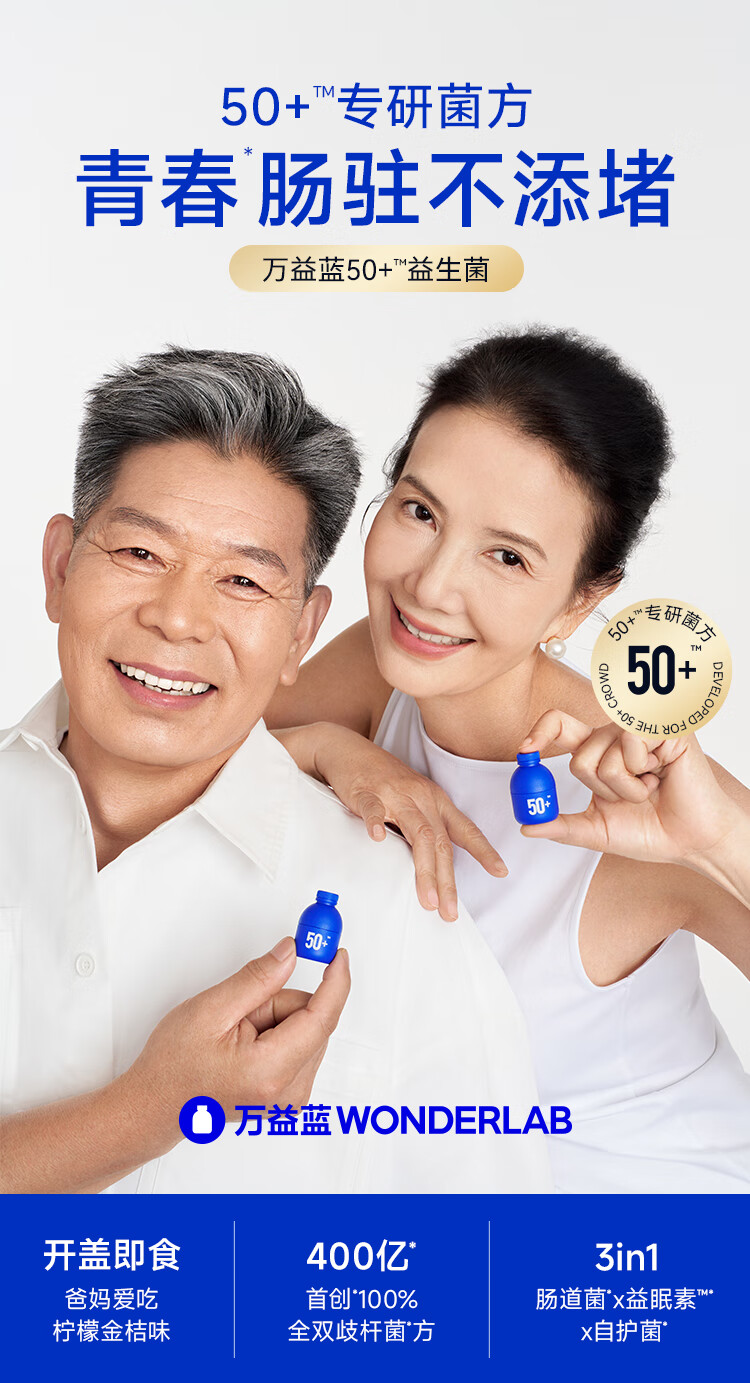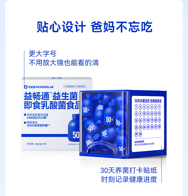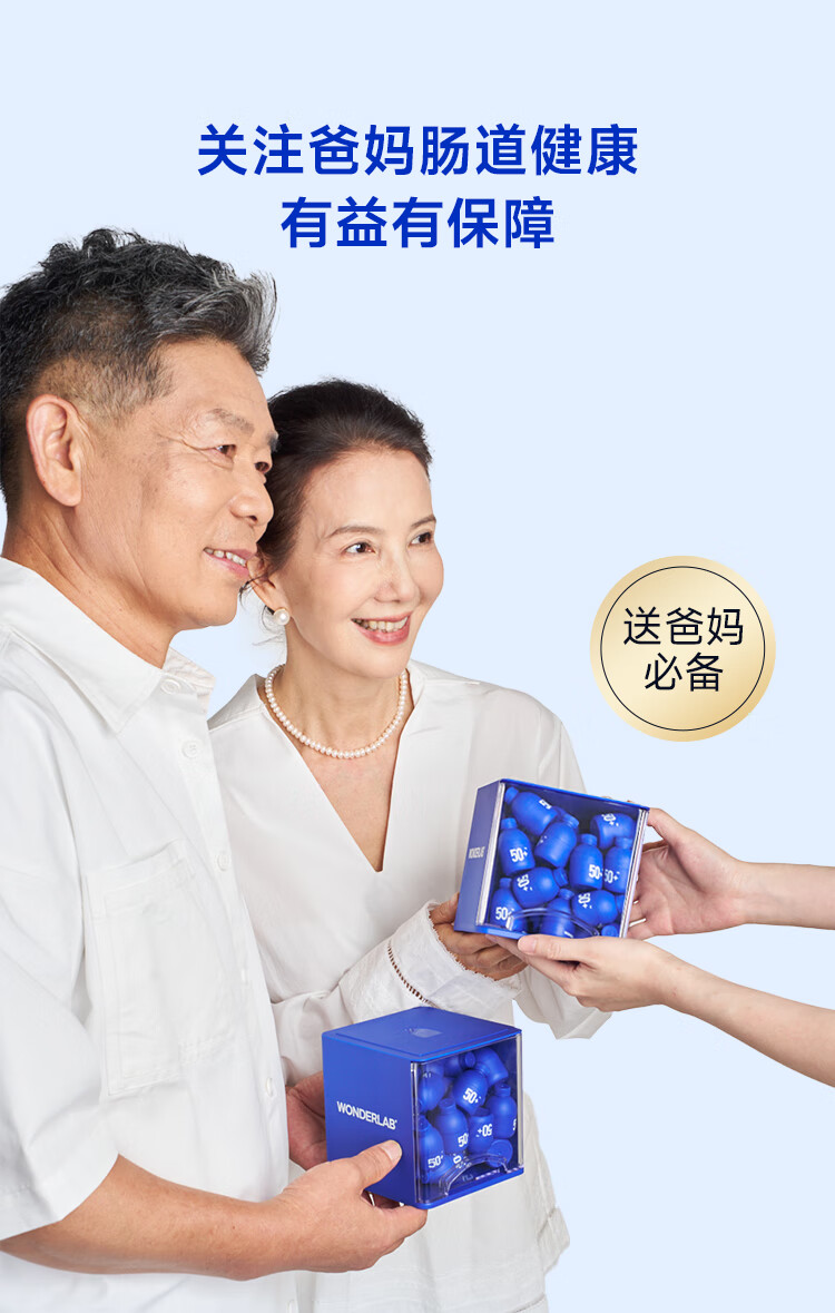 万益蓝(WONDERLAB)益畅通50岁+中老年益生菌成人小蓝瓶400亿 全双歧杆菌益生菌爸妈 【稳定期】50+中老年益生菌 30瓶*6盒