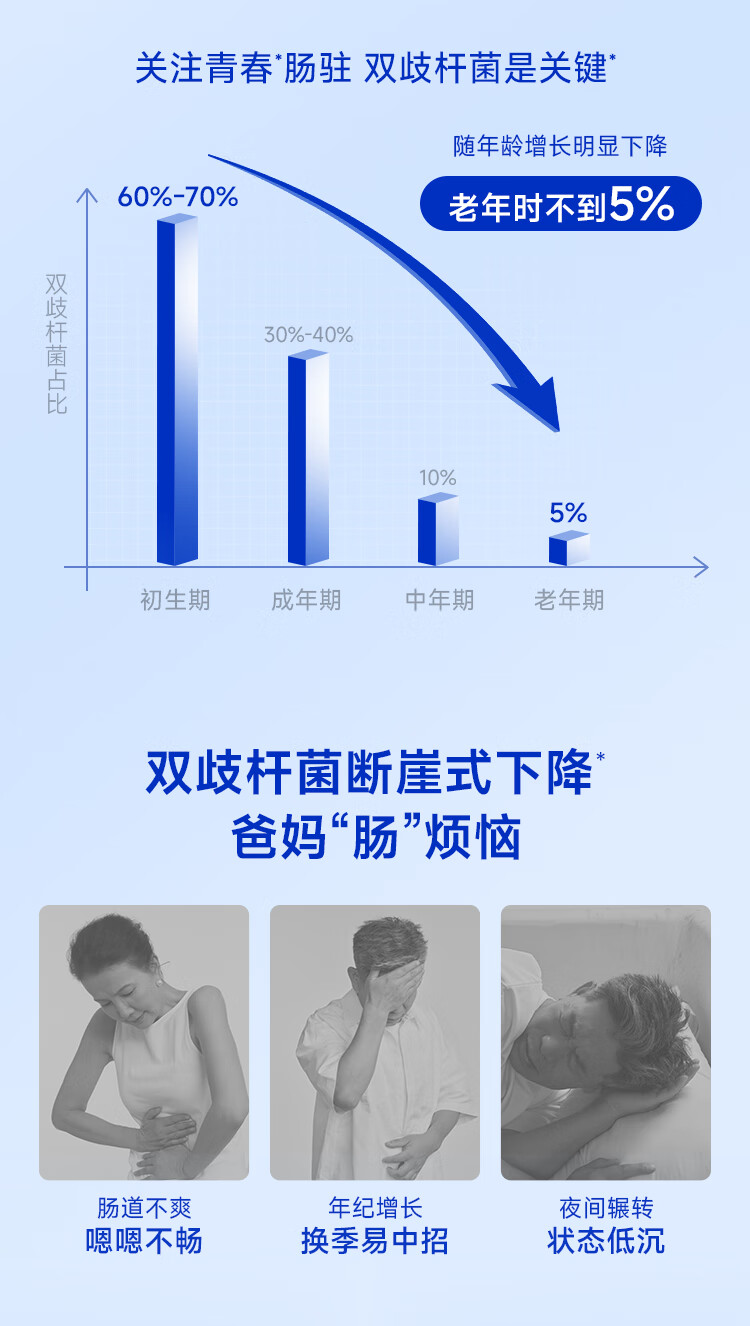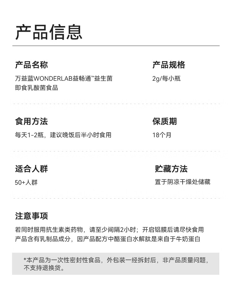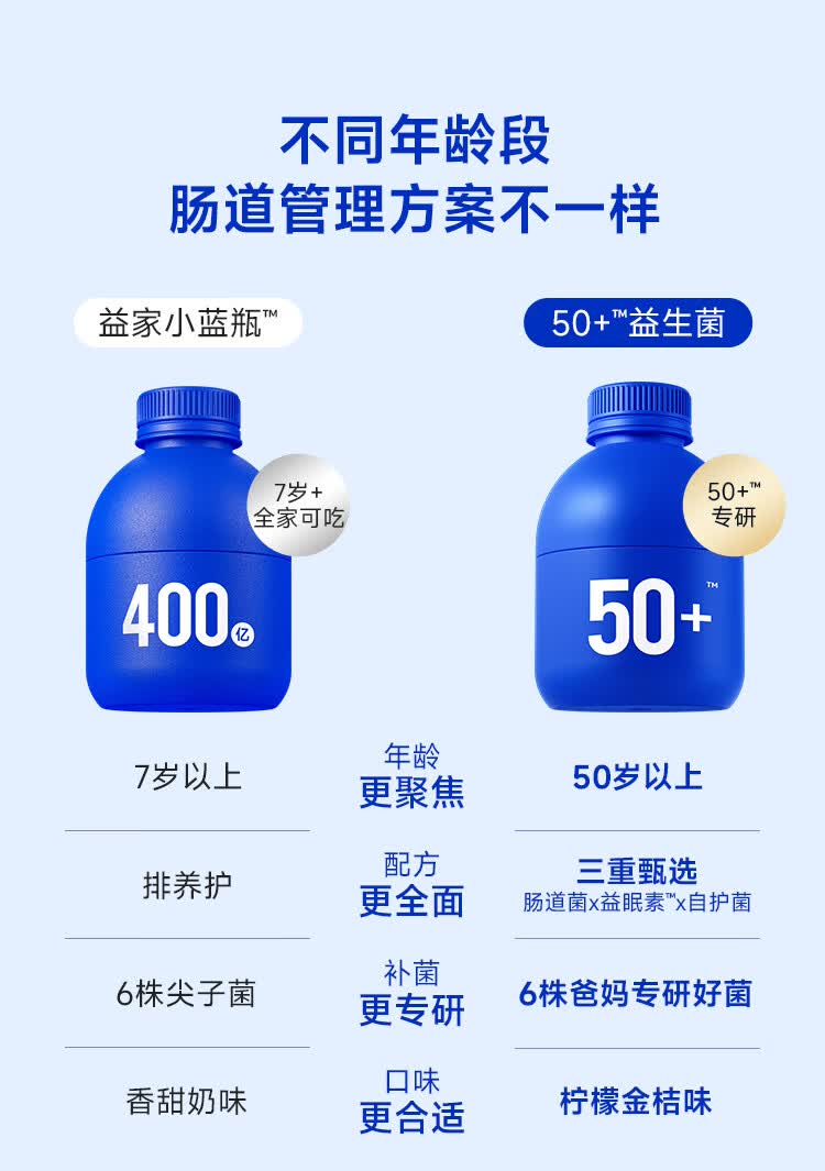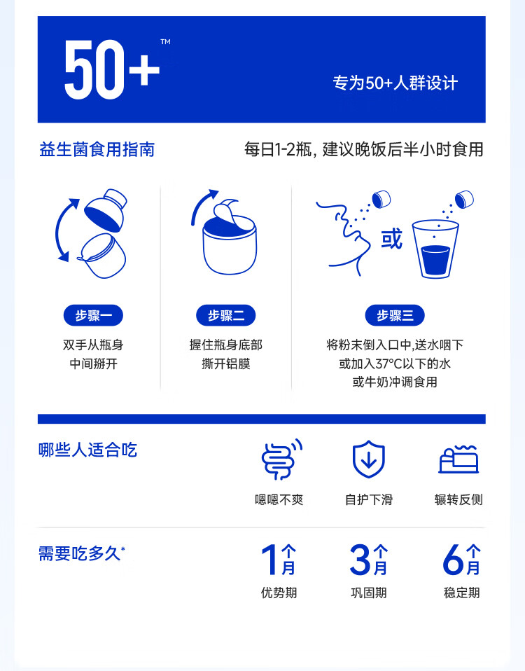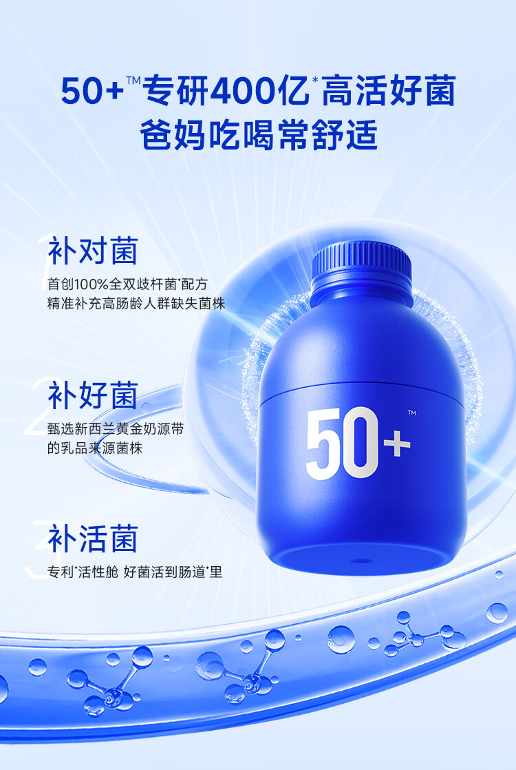 万益蓝(WONDERLAB)益畅通50岁+中老年益生菌成人小蓝瓶400亿 全双歧杆菌益生菌爸妈 【稳定期】50+中老年益生菌 30瓶*6盒