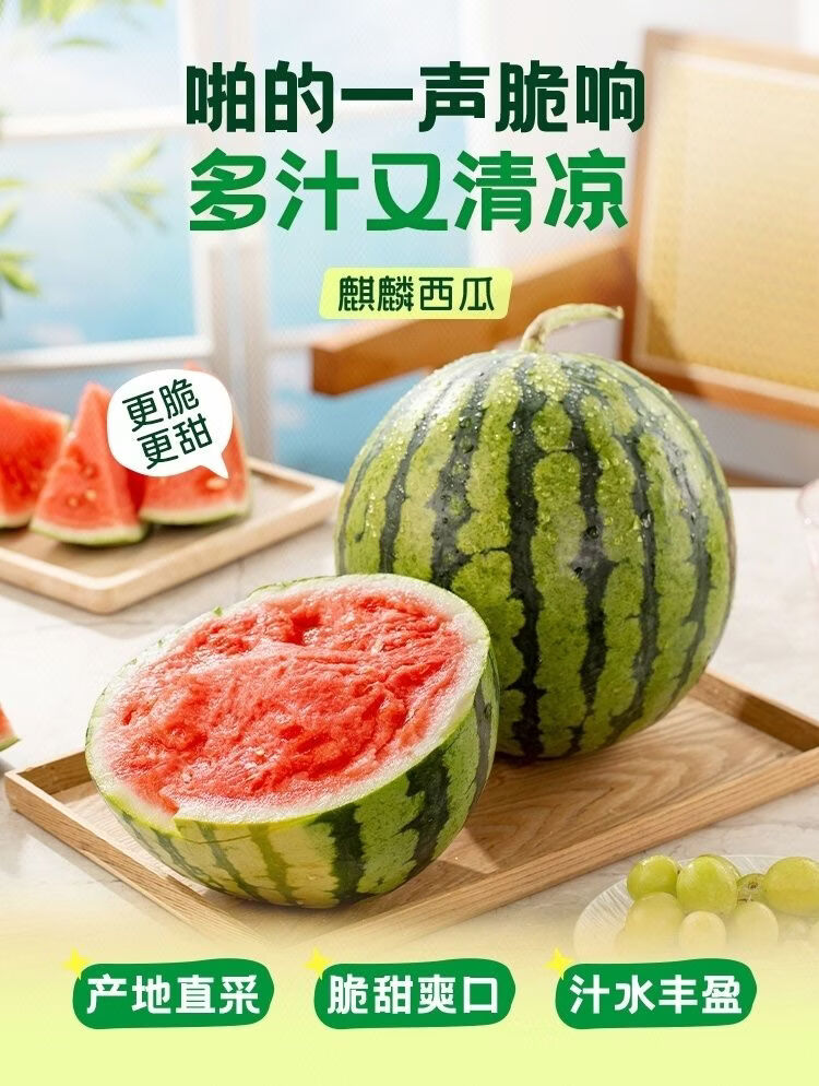 脆甜爆汁 安徽无籽美都麒麟瓜 新鲜采摘 产地直发 个别少籽 净重5-6斤【1个装】