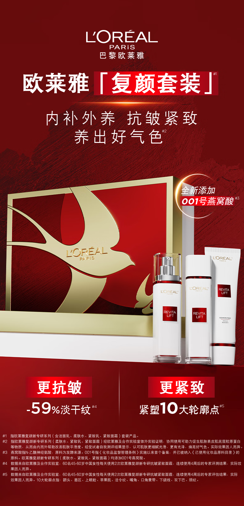 欧莱雅复颜洁面水乳礼盒套装燕窝酸补水护肤品母亲节礼物送妈妈