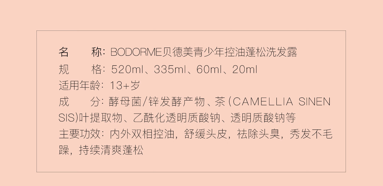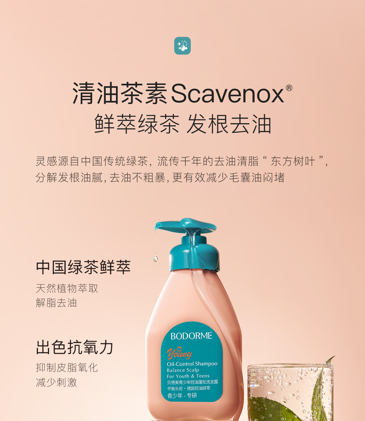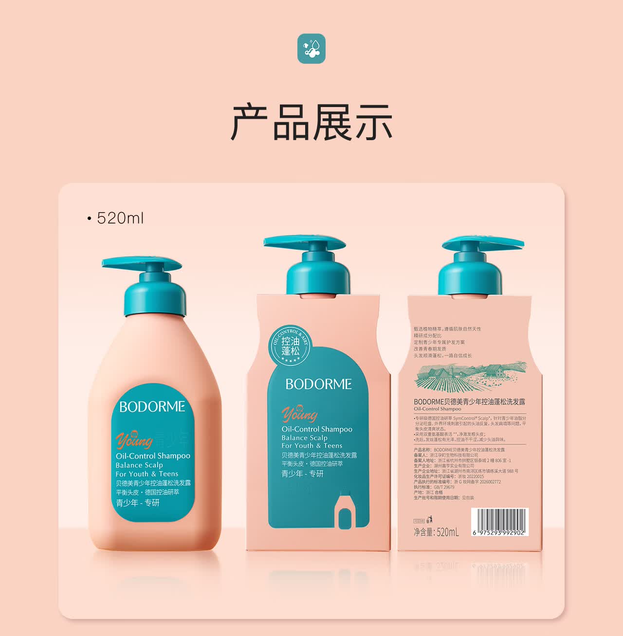 贝德美青少年洗发水去屑控油儿蓬松止痒清爽男孩女孩学生 520ml