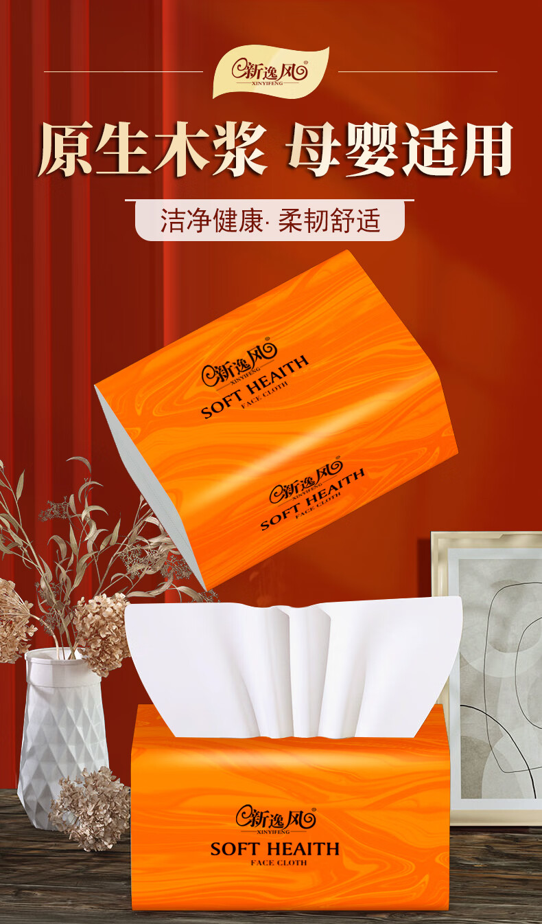 新逸风抽纸软抽面巾纸加大加厚家用整箱批发餐巾纸擦手纸卫生纸实惠装 3层 300张*24包