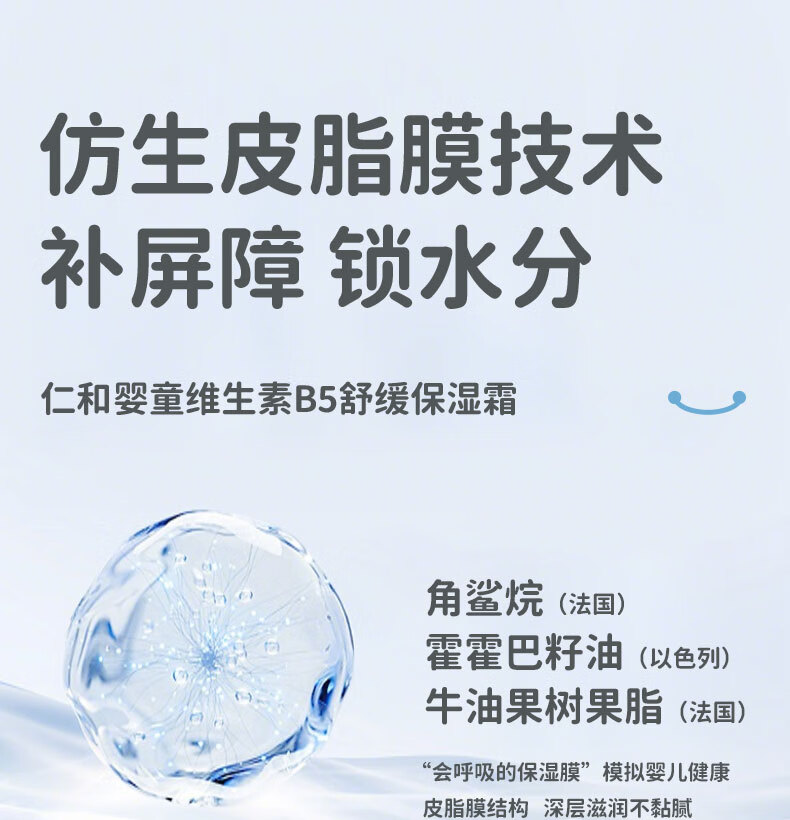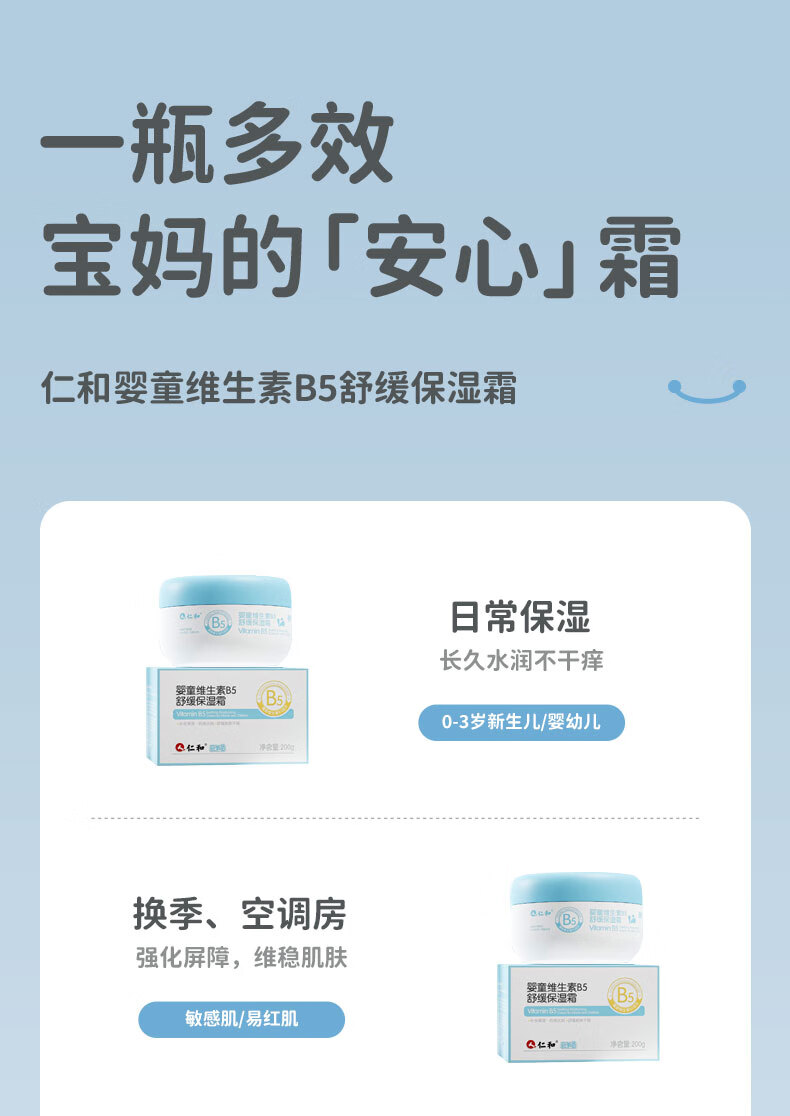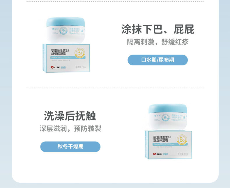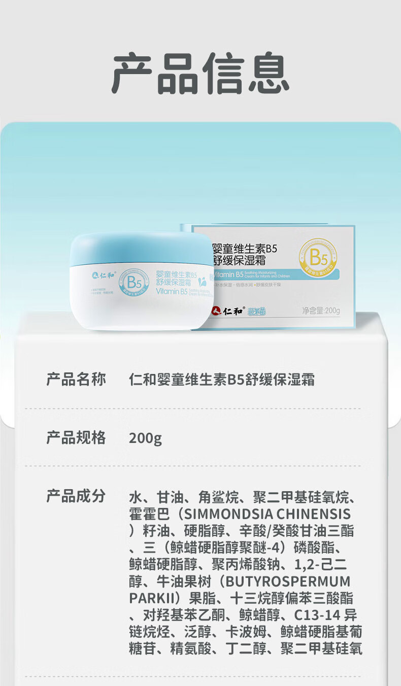 仁和婴儿大白罐面霜宝宝保湿润肤霜儿童维生素B5修复补水特护霜200g 仁和婴童维生素B5舒缓保湿霜200g