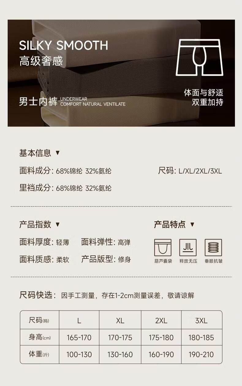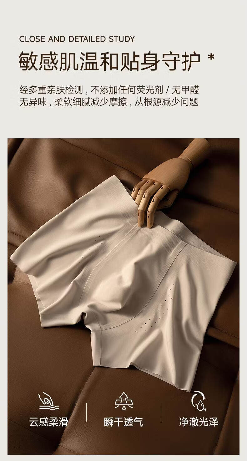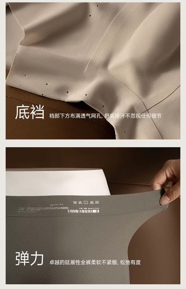 CEENIU男士内裤无痕零感高端裸感一片式无缝线四角裤2026全新夏季款 云絮灰+柠檬黄+夜阑灰 3XL (190-210斤)