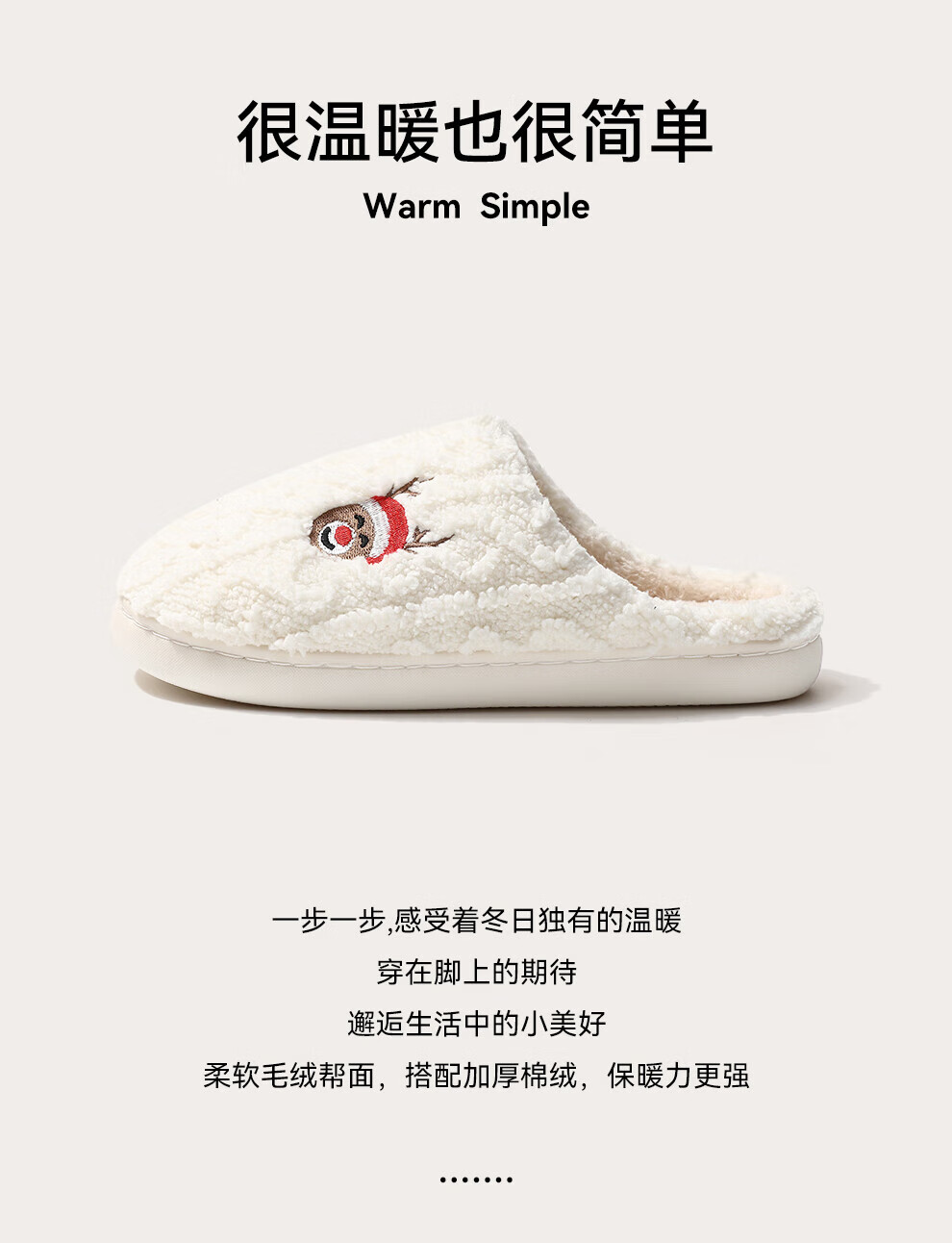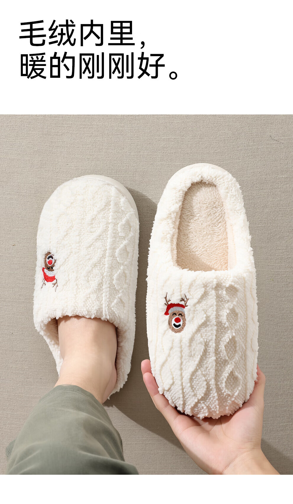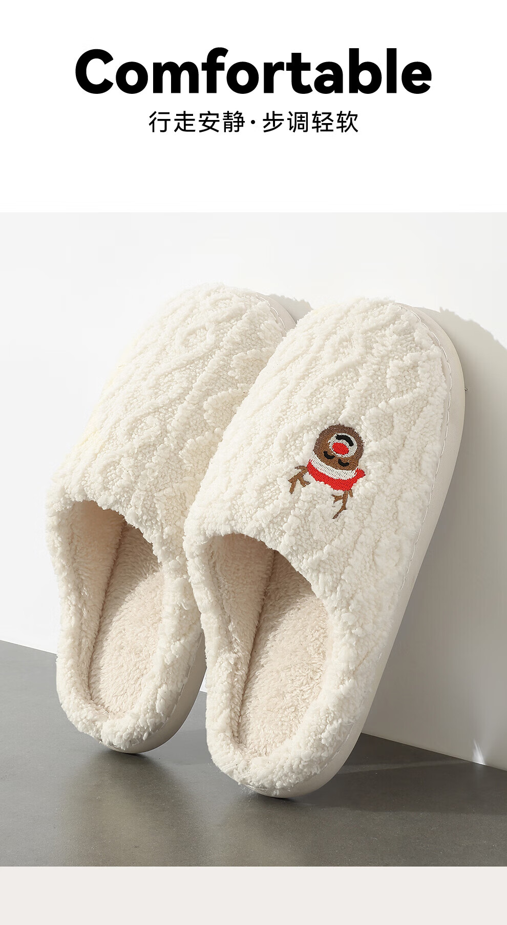 FZT简约舒适棉拖鞋女士秋冬季2025新款加厚保暖耐磨防滑毛绒棉鞋男款 白色 36-37 正码