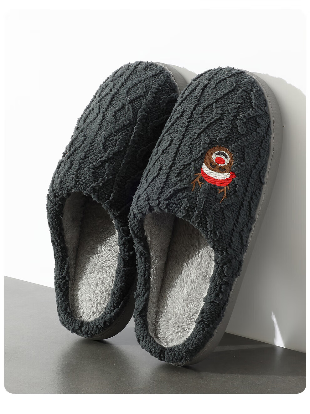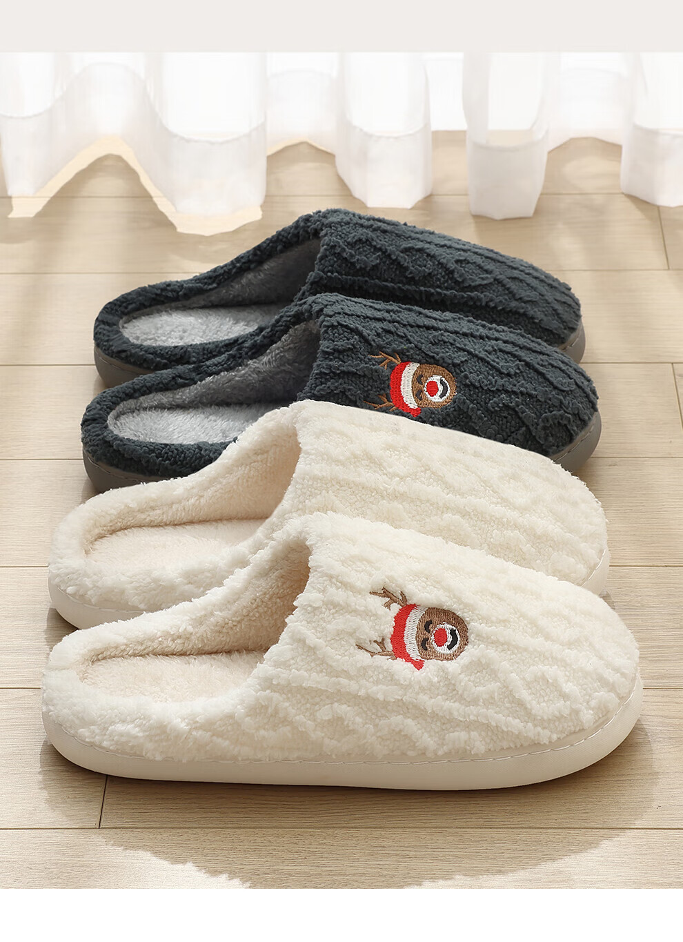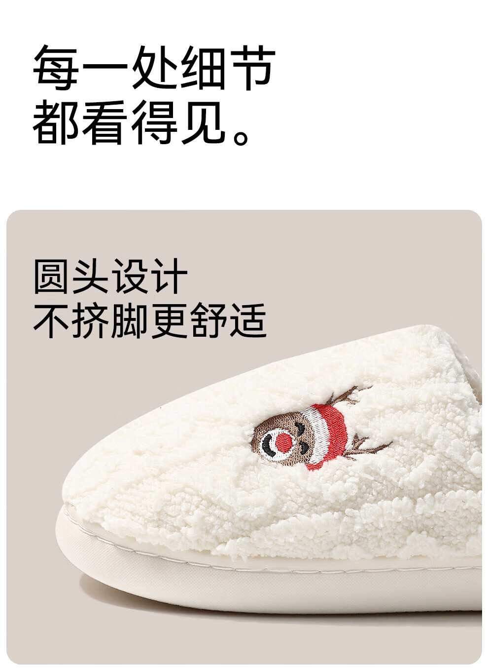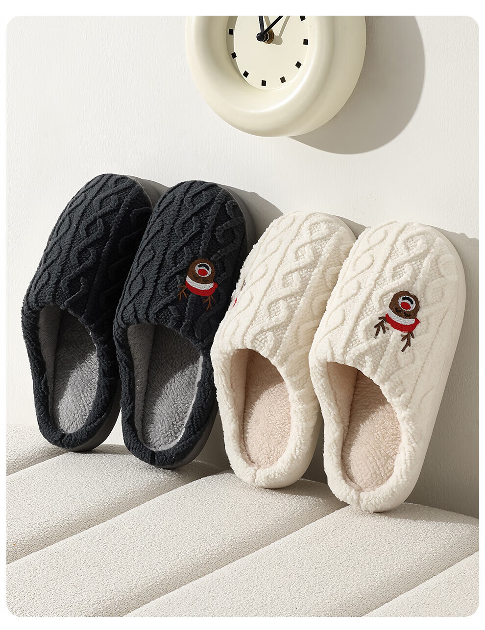 FZT简约舒适棉拖鞋女士秋冬季2025新款加厚保暖耐磨防滑毛绒棉鞋男款 白色 36-37 正码