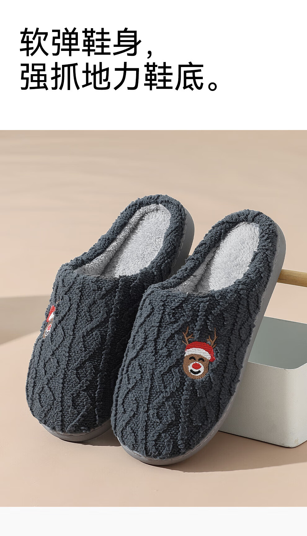 FZT包跟棉拖鞋女2025秋冬新款防滑防臭室内家居简约毛绒绒棉鞋男外穿 粉色 38-39 适合37-38【内长235mm】