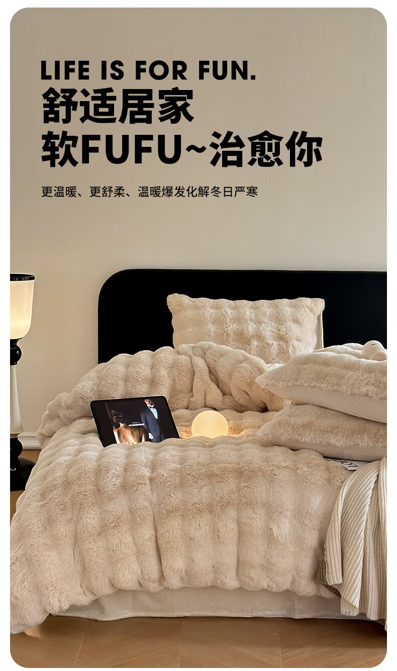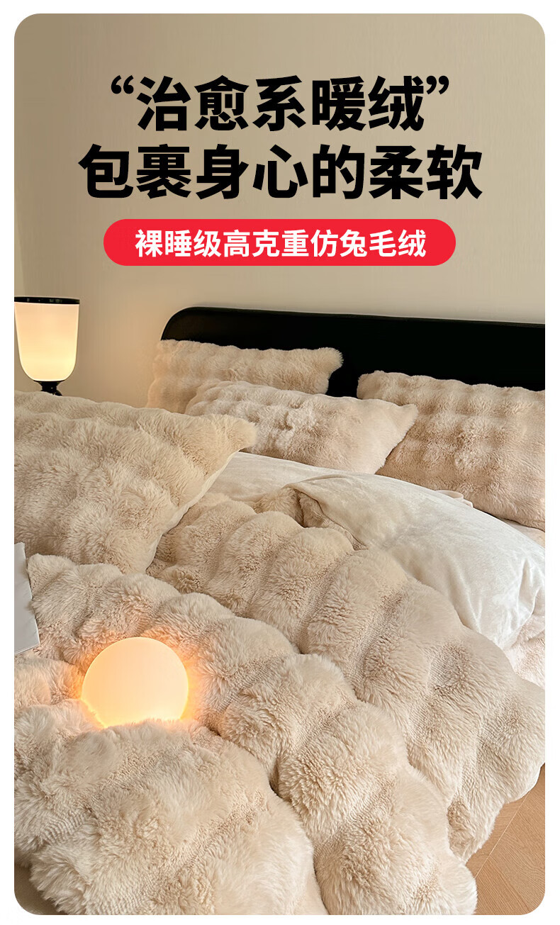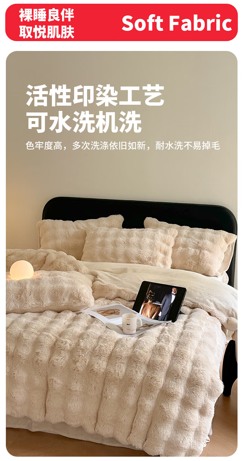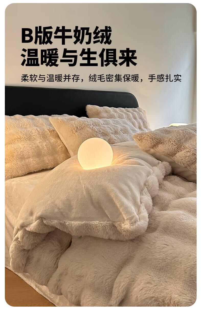 名创优品牛奶绒床上四件套 冬季加厚仿兔毛绒被套床单床笠单双人床三件套 MINISO-暖白 1.5 床笠款 四件套(被套2.0*2.3m)