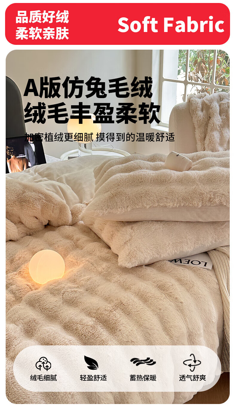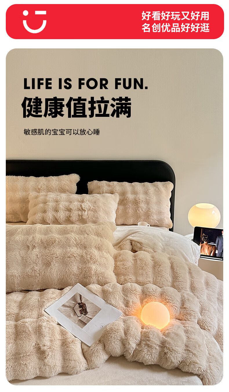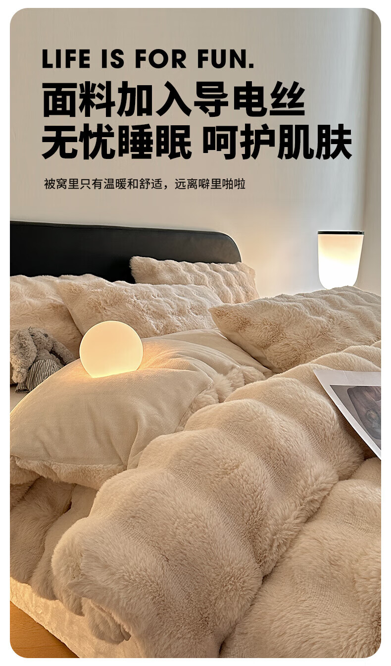 名创优品牛奶绒床上四件套 冬季加厚仿兔毛绒被套床单床笠单双人床三件套 MINISO-暖白 1.5 床笠款 四件套(被套2.0*2.3m)