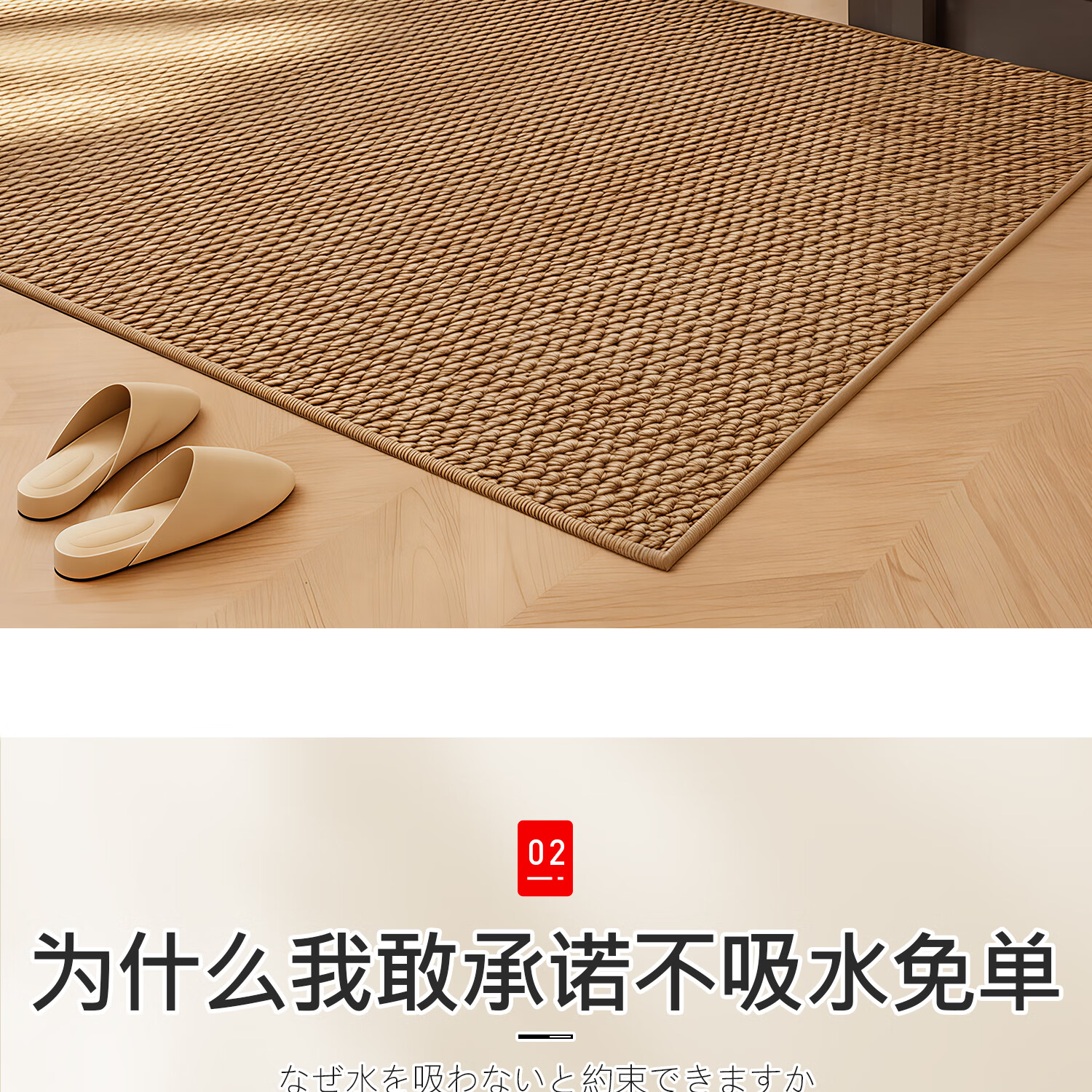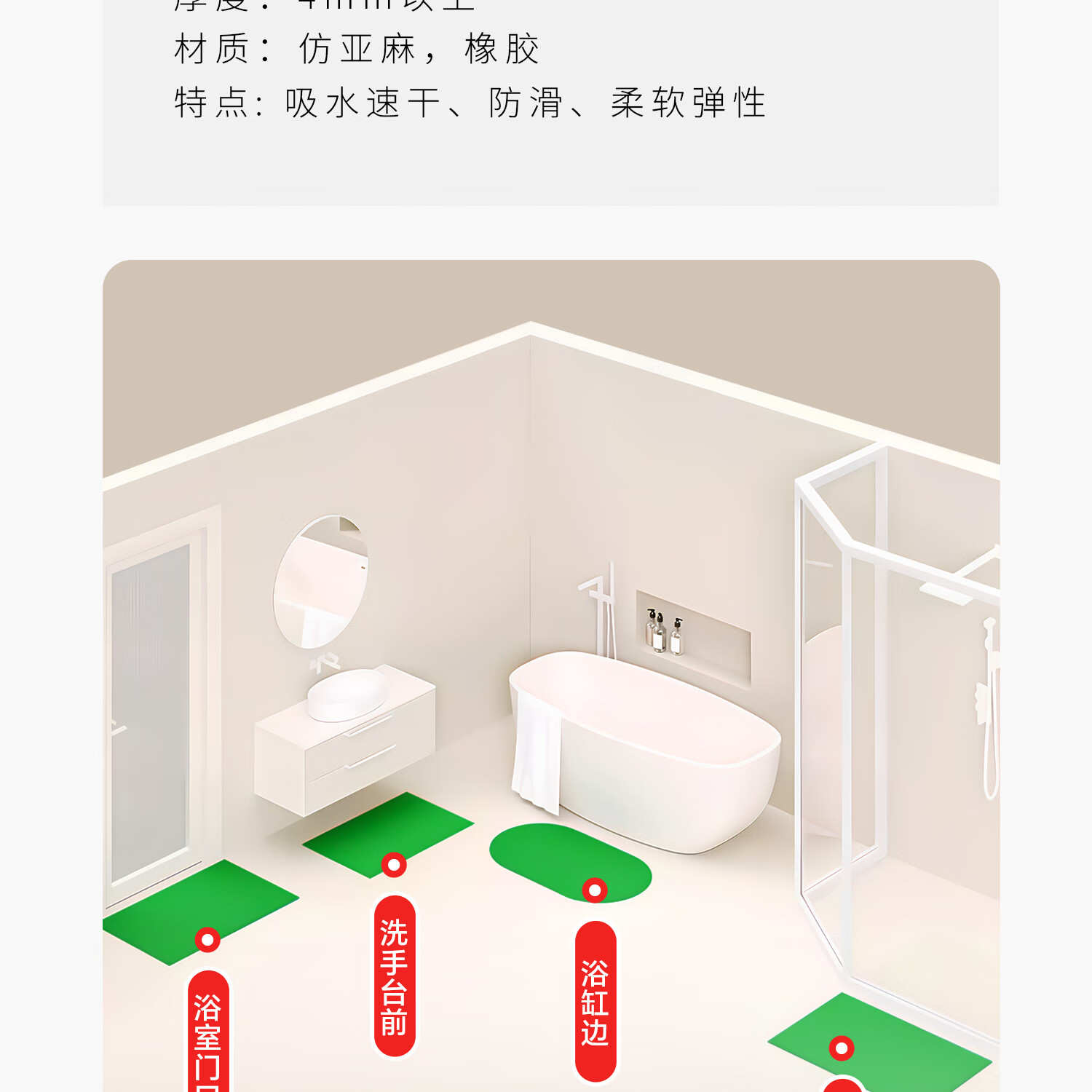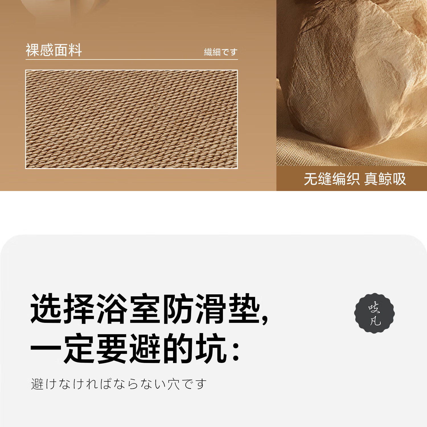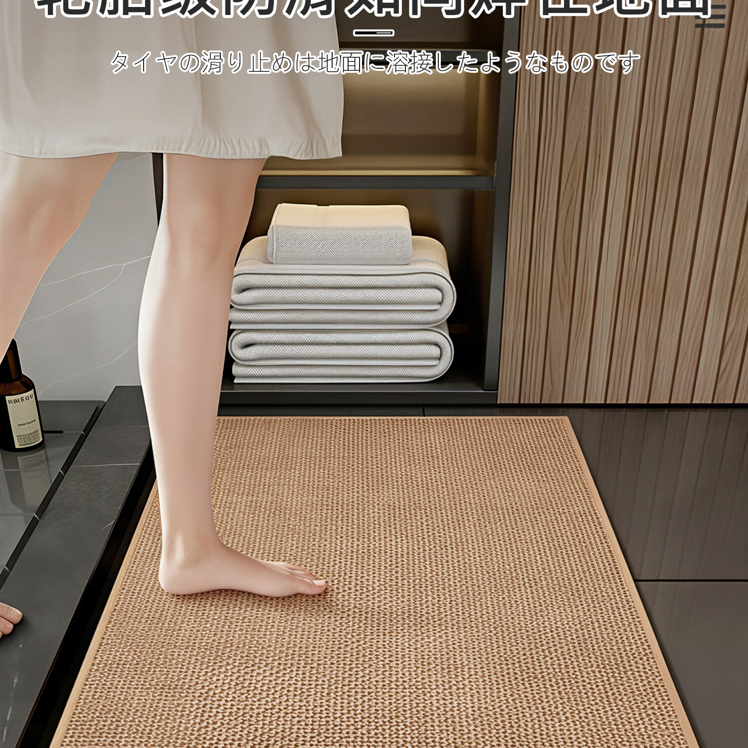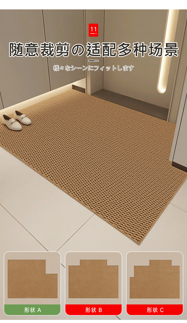 吱凡日本吸水地垫防滑胶垫厕所门口卫生间浴室地毯防滑垫洗手台家用垫 U纯色L编织bath方-驼色-小圆角 40*60【升级加厚约3.6mm丨秒吸速干】
